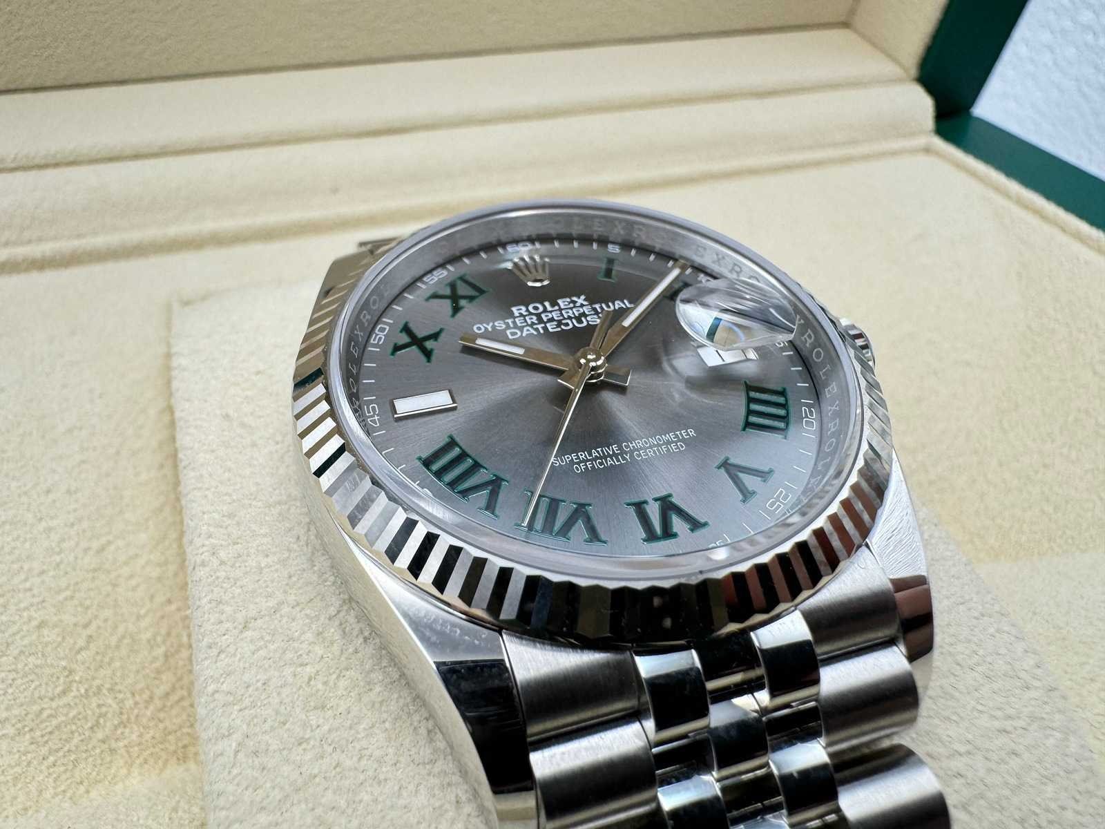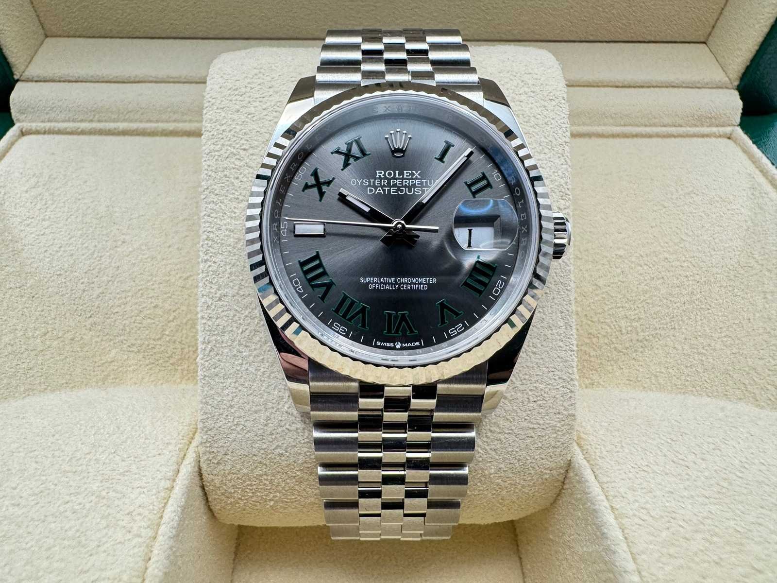 Rolex Datejust 36 Wimbledon Dial 126234 Introducing the Rolex Datejust 36 Wimbledon Dial 126234, a sleek and reliable timepiece from 2025. Key Features: Design and Materials: Case: 36mm case made from 904L Oystersteel and 18K white gold. Bezel: Fluted bezel in 18K white gold. Dial: Wimbledon dial with distinctive Roman numerals and Chromalight display for enhanced legibility. Crystal: Scratch-resistant sapphire crystal with Cyclops lens over the date. Movement: Caliber: Powered by the Rolex Calibre 3235, a self-winding mechanical movement. Power Reserve: Approximately 72 hours. Strap: Material: Jubilee bracelet in Oystersteel. Clasp: Jubilee clasp Additional Features: Water Resistance: Waterproof to a depth of 100 meters (330 feet). Date Function: Instantaneous date with rapid setting. Warranty: International Rolex warranty until 2029. The Rolex Datejust 36 Wimbledon Dial 126234 offers modern precision and a timeless design. This 2025 model is a versatile and dependable choice for any occasion. Bezorgtermijn 7 dagen Merk: Rolex Model: Datejust 36 Bouwjaar: 2026 Referentienummer: 126234 Materiaal kast: Steel Materiaal horlogeband: Steel Jubilee Fluted Materiaal sluiting: Steel Wijzerplaat: Wimbledon Kastmaat: 36 mm