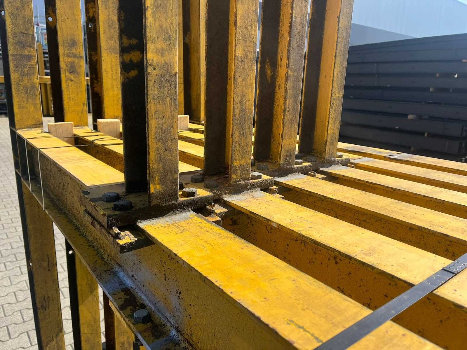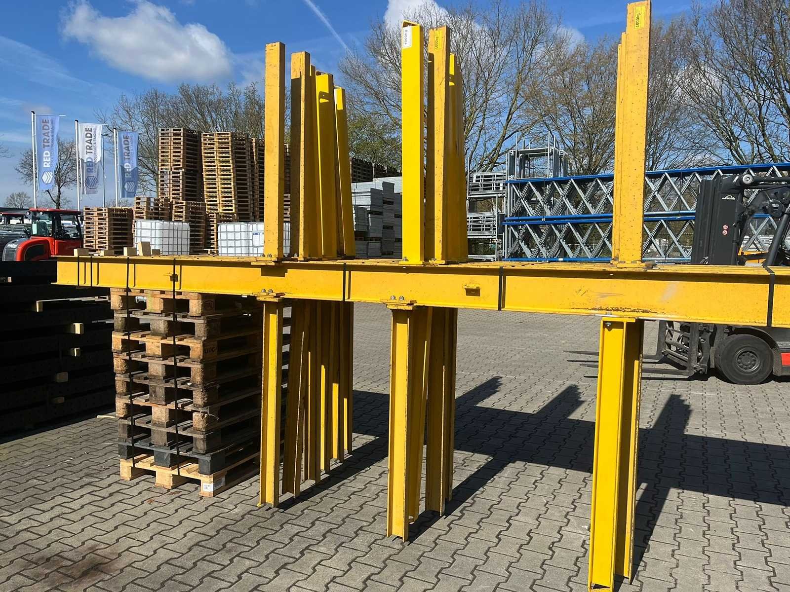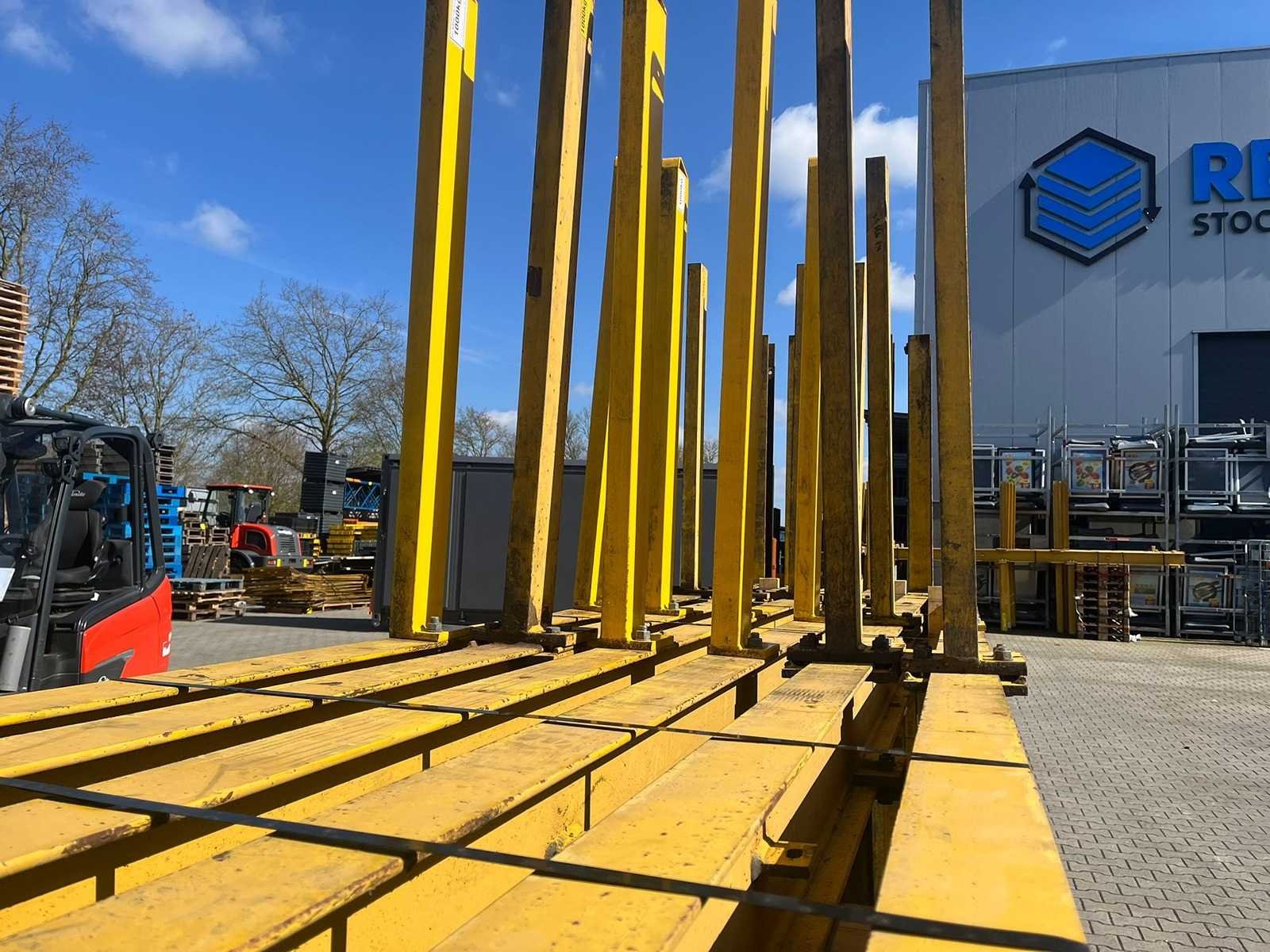 Dit kavel heeft 6 staanders en 28 armen; armlengte 1200mm; draagkracht 1000kg per arm; 6000kg draagkracht per staander; 3000kg per kant; Reeds gedemonteerd; wordt gedemonteerd uitgeleverd; voeten zitten vast aan de staander; staanderhoogte ca 5150mm; gebruikersschade; sommige staanders kunnen iets langer zijn; foto van de opbouw ter indicatie; Sectie afm. h: 4500mm Aantal staanders: 6 Aantal liggers: 28