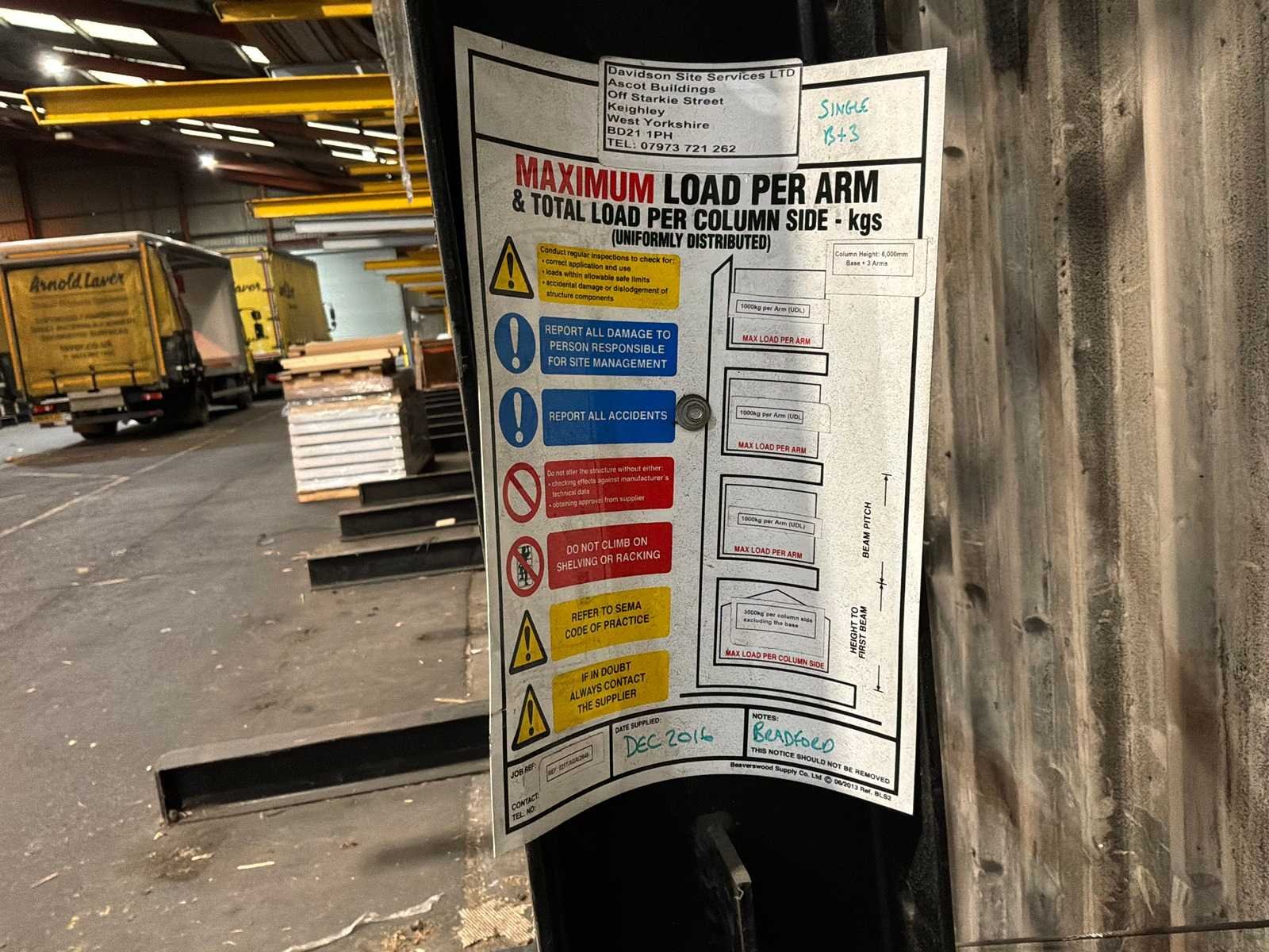 Dit kavel heeft 8 staanders en 24 armen; 1000kg draagkracht per arm; Reeds gedemonteerd; wordt gedemonteerd uitgeleverd; staander; armen in hoogte verstelbaar; kolomhoogte 4800mm; gegalvaniseerd; armlengte ca 1200mm; stelling zonder inhoud; Sectie afm. h: 4800mm Aantal staanders: 8 Aantal liggers: 24