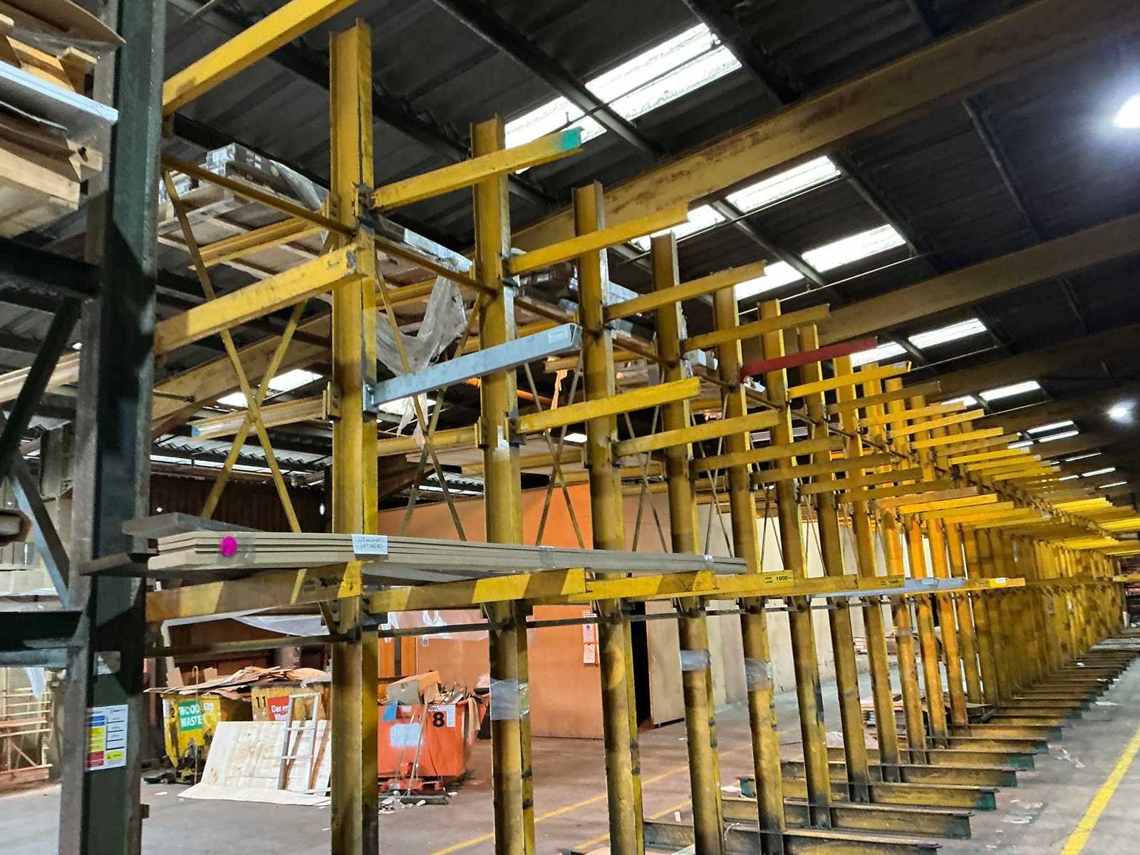 Armlengte 1200mm; staanderhoogte 5150mm; foto van obgebouwde stelling ter indicatie; Sectie afm. h: 5150mm Aantal staanders: 9 Aantal liggers: 54