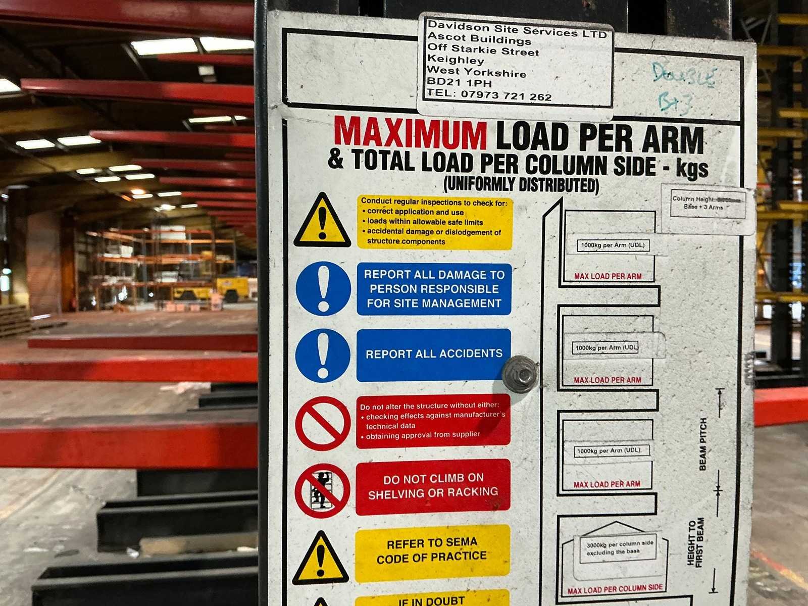 Dit kavel heeft 4 staanders en 24 armen; armlengte 1300mm; draagkracht 1000kg per arm; 6000kg draagkracht per staander; 3000kg per kant; Reeds gedemonteerd; wordt gedemonteerd uitgeleverd; voeten zitten vast aan de staander; armen in hoogte verstelbaar; staanderhoogte 4500mm; staanders worden voor de voet uitgeleverd; armen worden per laag uitgeleverd; gebruikersschade; sommige staanders kunnen iets langer zijn; Sectie afm. h: 4500mm Aantal staanders: 4 Aantal liggers: 24