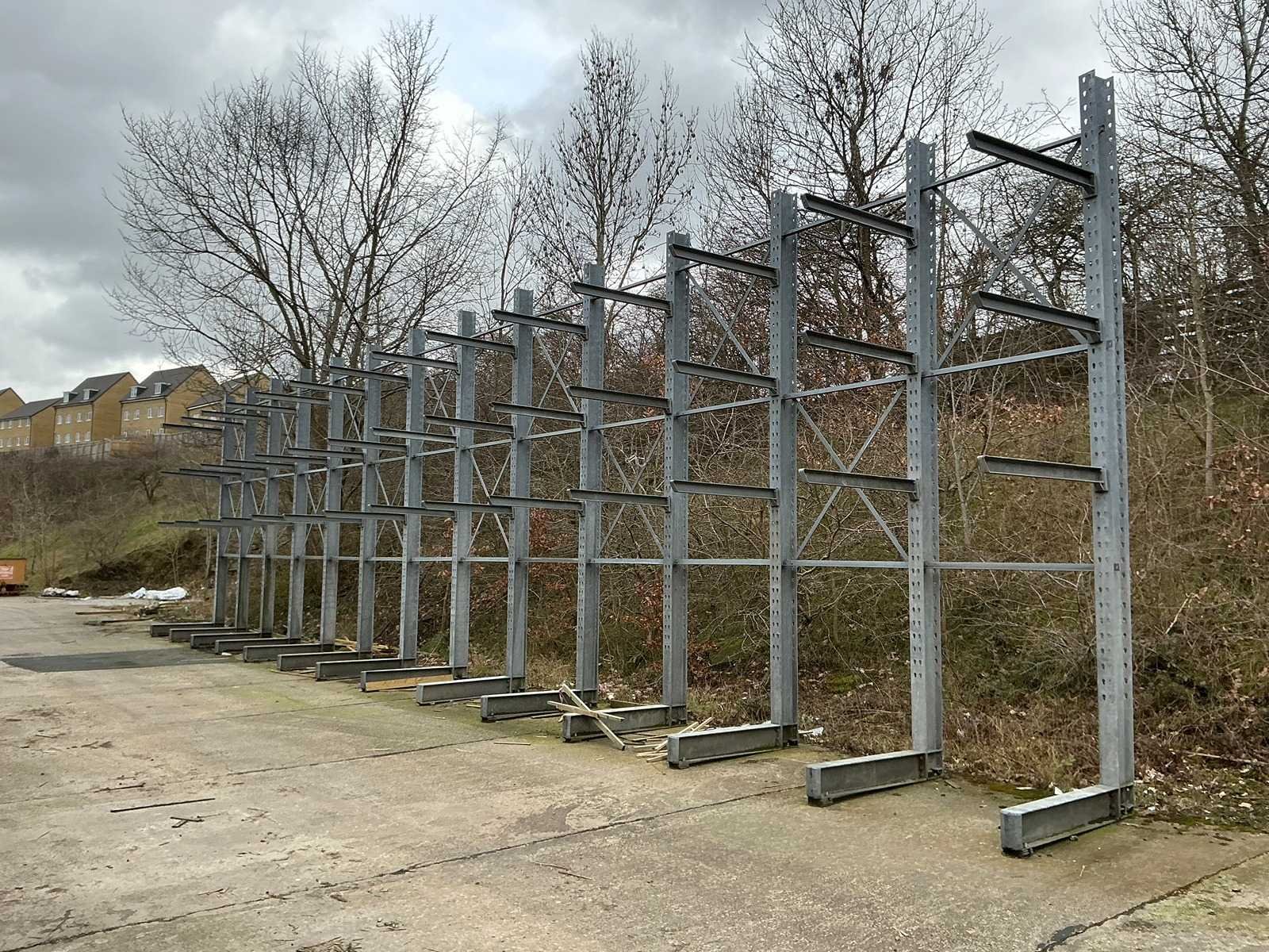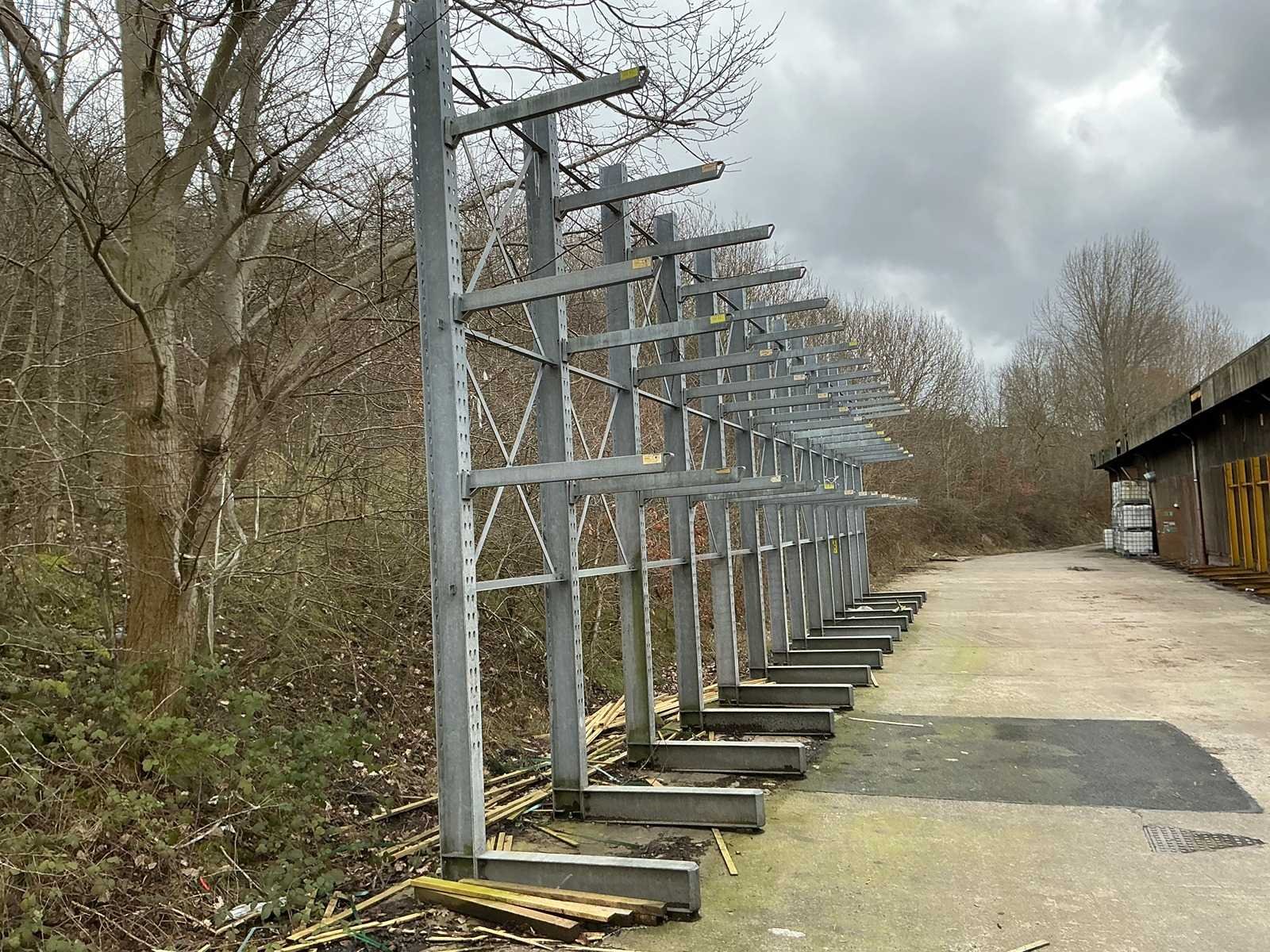 Dit kavel heeft 14 staanders en 42 armen; Reeds gedemonteerd; wordt gedemonteerd uitgeleverd; staander; armen in hoogte verstelbaar; kolomhoogte 5000mm; gegalvaniseerd; armlengte 1240mm; draaglast 1000kg per arm; Sectie afm. h: 5000mm Aantal staanders: 14 Aantal liggers: 42