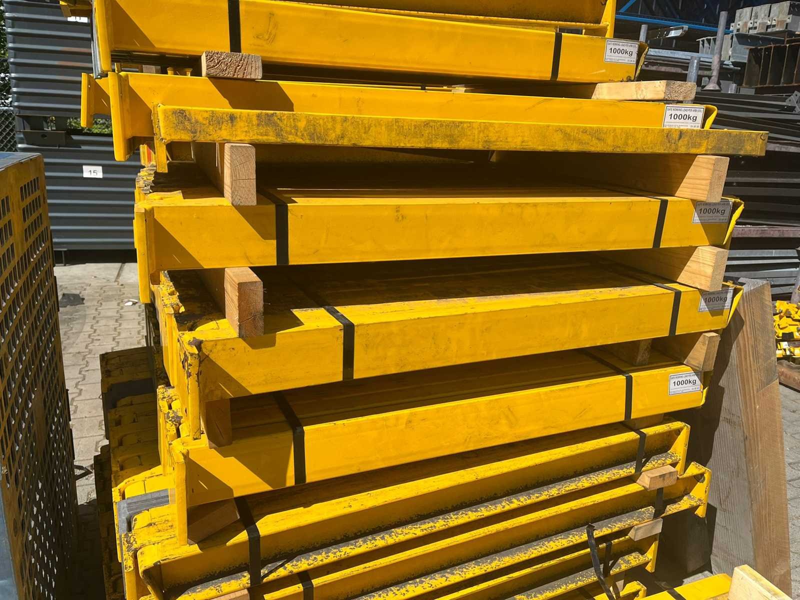 Dit kavel heeft 8 staanders en 24 armen; Reeds gedemonteerd; wordt gedemonteerd uitgeleverd; armen in hoogte verstelbaar; kolomhoogte 6000mm; armlengte 1210mm; foto's ter indicatie; Sectie afm. h: 6000mm Aantal staanders: 8 Aantal liggers: 24