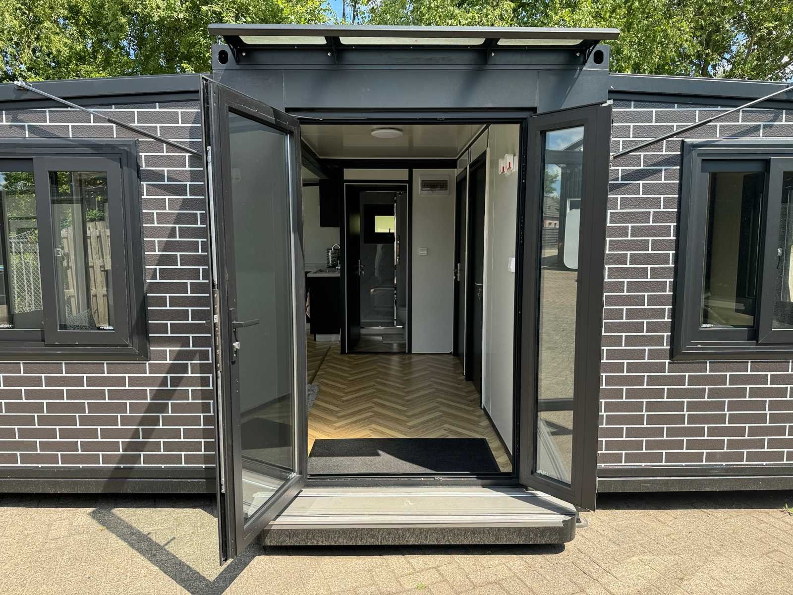 Voorzien van geïsoleerde wanden en dak; 2 slaapkamers; leefruimte met hoekkeuken; badkamer met douche, wc en wastafel; elke ruimte voorzien van verlichting en stopcontacten 230V; meterkast; PVC vloer; aluminium ramen en deuren; afsluitbaar; water, stroom en afvoer kan makkelijk aangesloten worden is voorbereid; ongebruikt en staat transport klaar (let op kleur is steen motief zoals op de eerste foto) (let op meubilair niet inbegrepen) (let op dit model heeft geen glazenwand op de linker zijwand foto’s zijn ter illustratie, van binnen is hij verder exact hetzelfde) (transport afmetingen 590x220x248 cm, gewicht 3500 kg) Merk: Rhino Houses Model: 36,5 m2 Product type: 2 slaapkamers, badkamer en keuken Gewicht: 3500 Lengte: 5900 Breedte: 6200 Hoogte: 2480