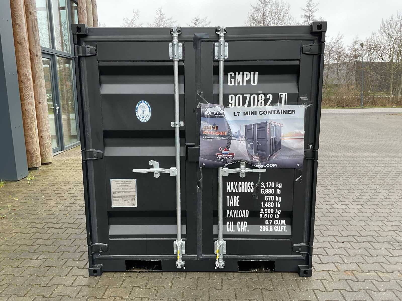 Rhino-cross-containers 7ft mini container met deur en raam