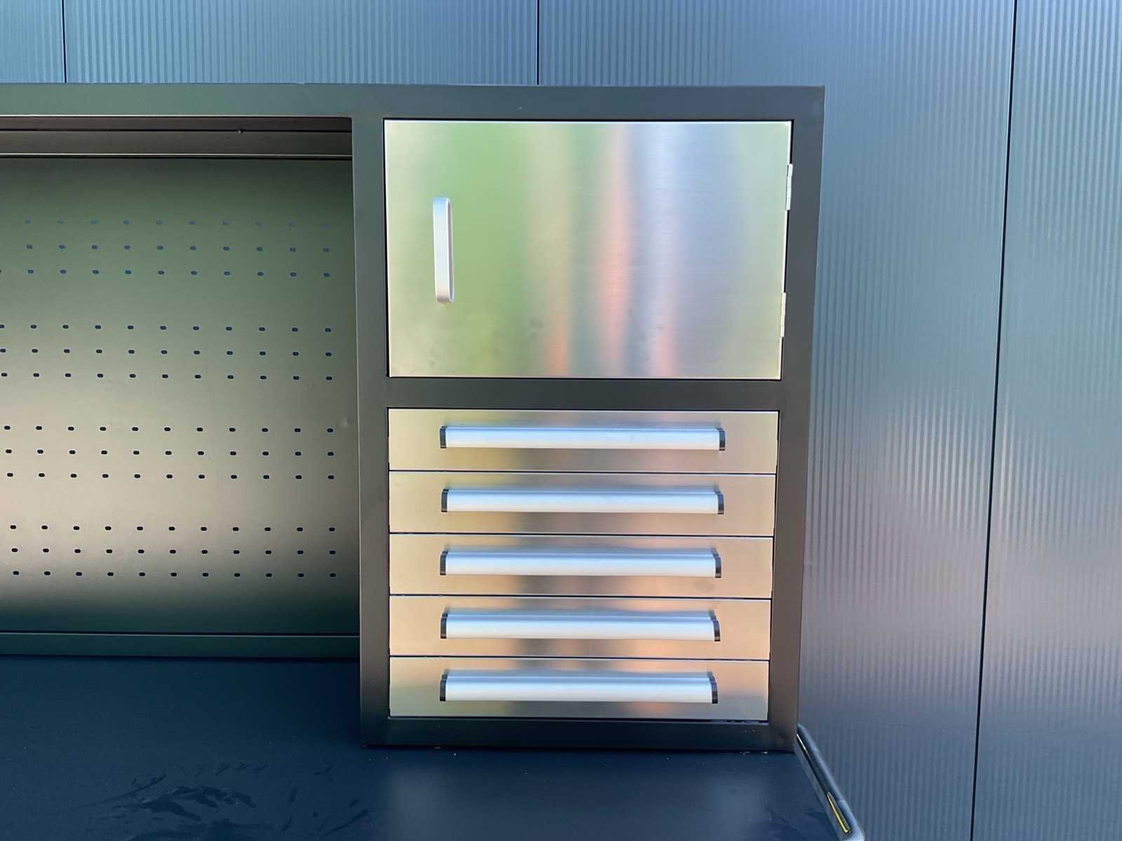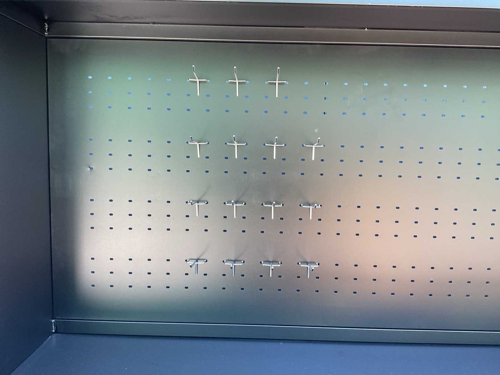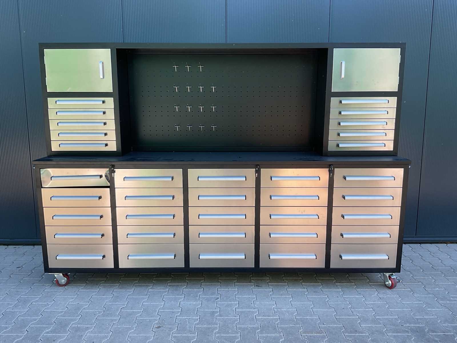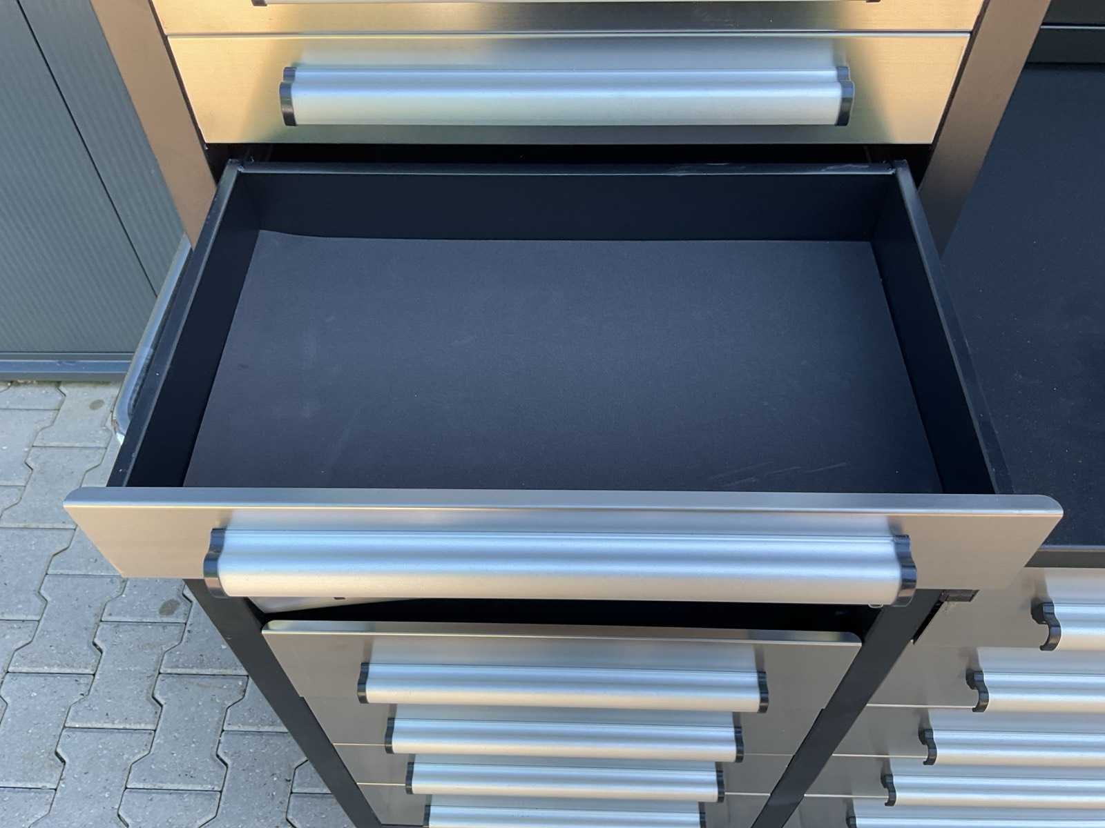 Merk: Rhino Cross Model: H10FT-35D-2-01C-01 Type: Industriële werkbank / gereedschapskast Materiaal: Gepoedercoat staal Kleur: Zwart/RVS Aantal laden: 35 Aantal kastdeuren: 2 Breedte: ca. 287 cm Diepte: ca. 58,5 cm Hoogte: ca. 205 cm Merk: Rhino Cross Model: H10FT-35D-2-01C-01 Product type: 202604071405