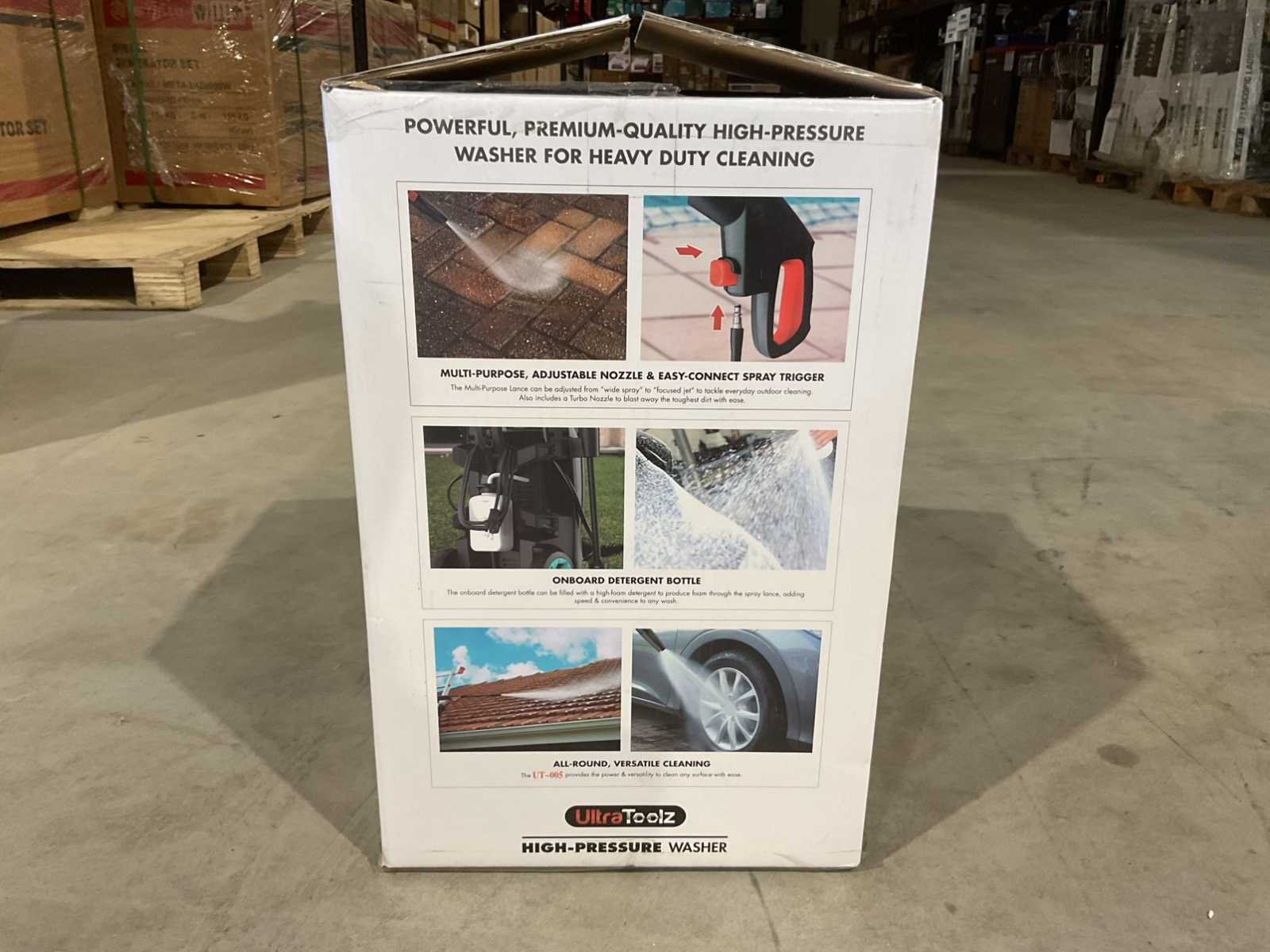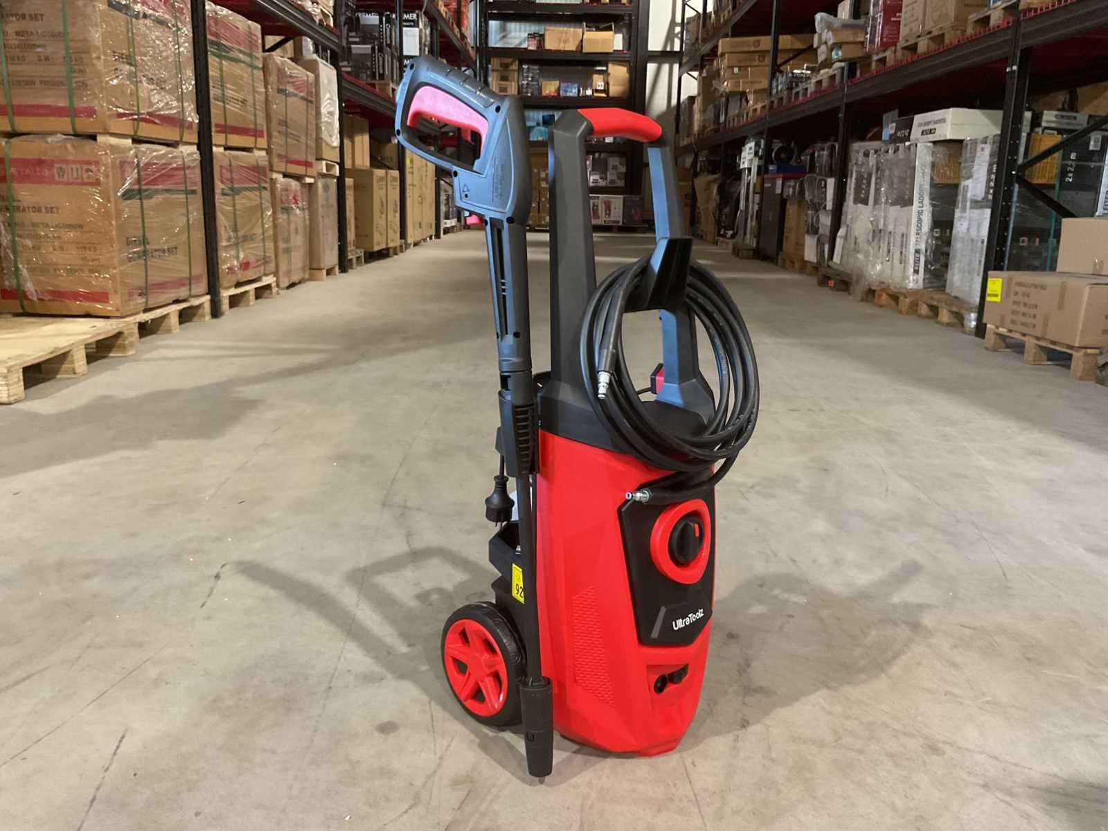 Voorzien van 1800W motor; 500 cm slang; foam spuit; ongebruikt in doos (transport afmetingen 40x40x55 cm) Merk: UltraToolz Type: UT-005 Bouwjaar: 2025 Max. druk: 140bar Kleur: Rood Gewicht: 10kg