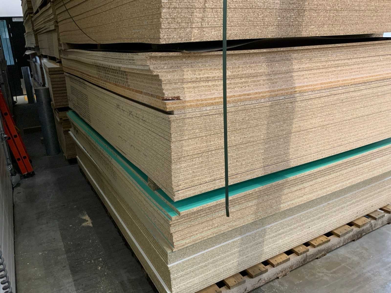 Platen zijn ca 2800x2070x20mm; circa 210 platen;diverse soorten; afmetingen kunnen afwijken; decoratie spaanplaat; sommige dubbelzijdig gelamineerd; past in 1 tautliner; 7 pakken; stapel met gele sticker nummer 5;