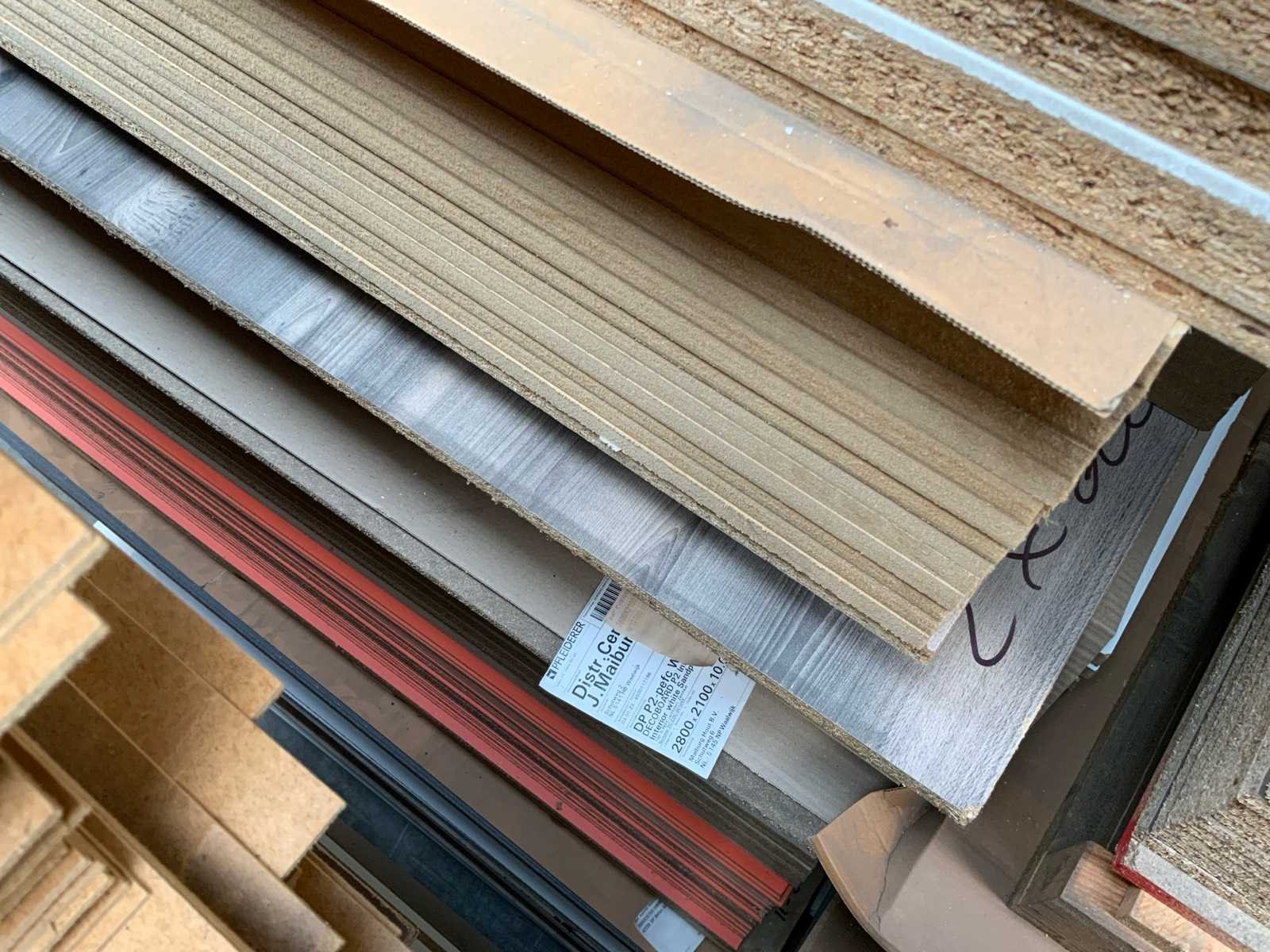 Platen zijn ca 2800x2070x20/28/38mm; afmetingen kunnen afwijken; decoratie spaanplaat; sommige dubbelzijdig gelamineerd; past in 1 tautliner; 8 pakken; stapel met gele sticker nummer 8;