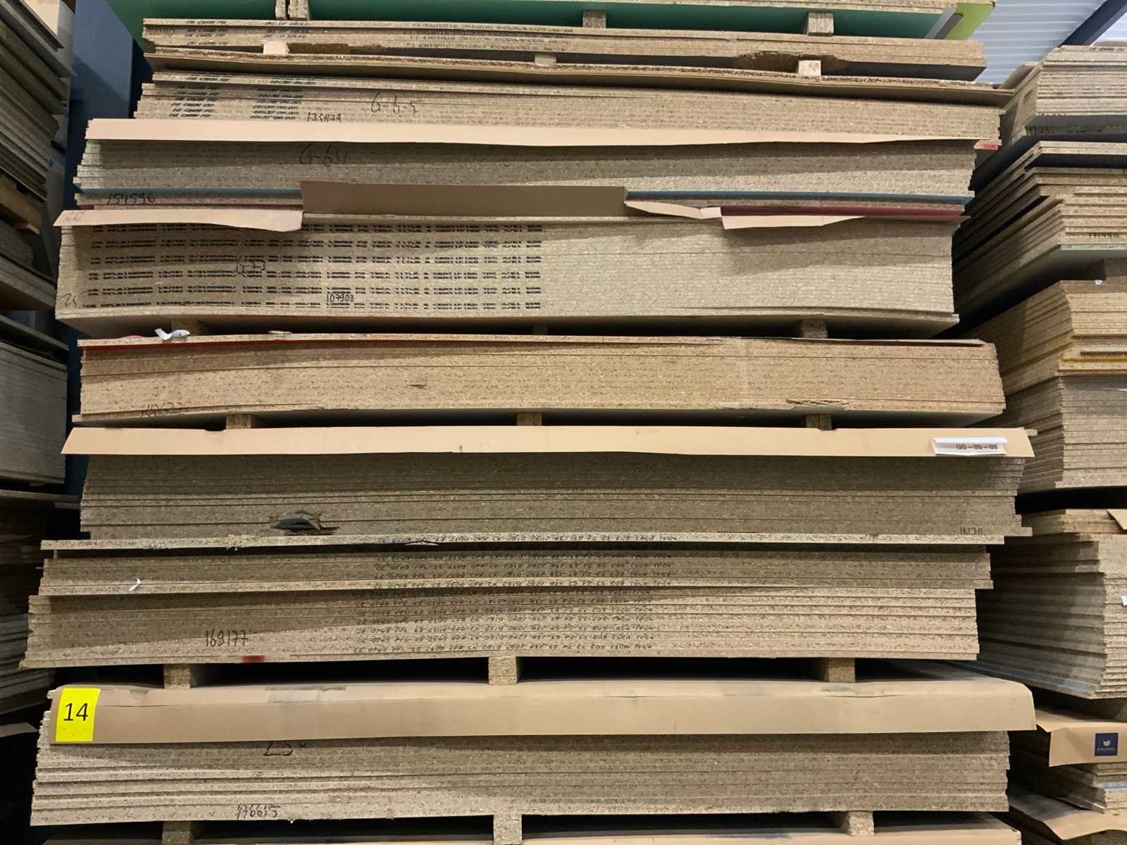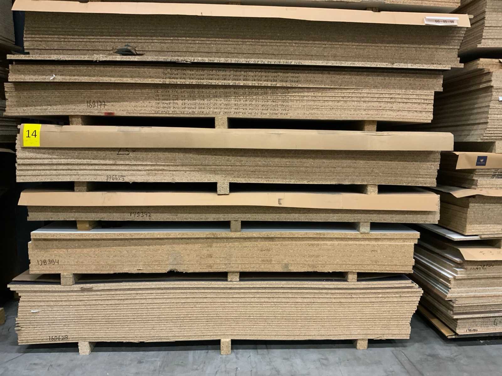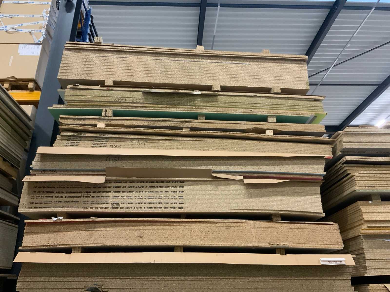 Platen zijn ca 2800x2070x18/28/38mm; diverse soorten; afmetingen kunnen afwijken; decoratie spaanplaat; sommige dubbelzijdig gelamineerd; past in 1 tautliner; stapel met gele sticker nummer 14;