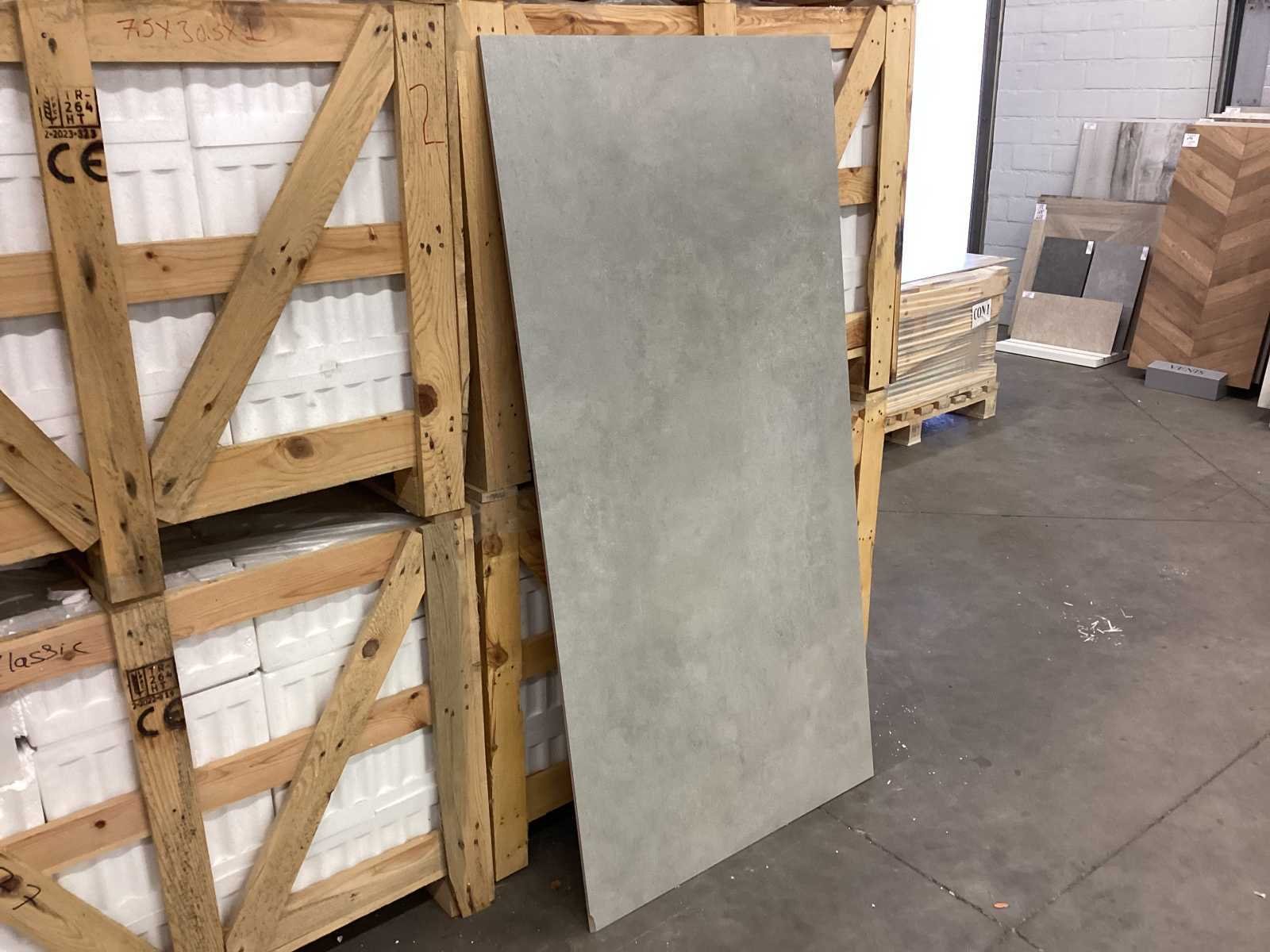 1 pallet Within 14 days Merk: Kutahya Kleur: Vista Grey Afwerking: mat Lengte: 800mm Breedte: 1600mm Dikte: 9mm Materiaal: Keramiek Type: Vloertegel Aantal m² per verpakking: 2.56m² Aantal pakken: 20 Totaal oppervlakte: 51.2m² Totaal gewicht: 1024kg