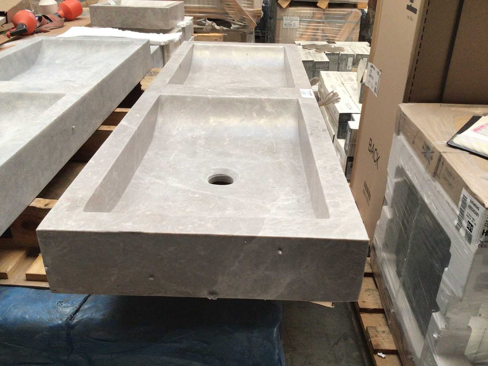 Natuursteen marmer beige/grey dubbele wastafel 120x40x10 cm