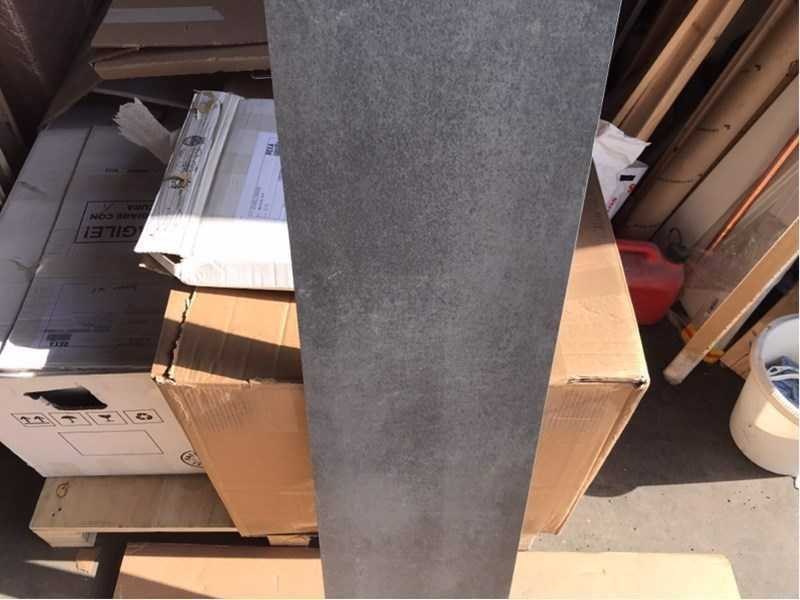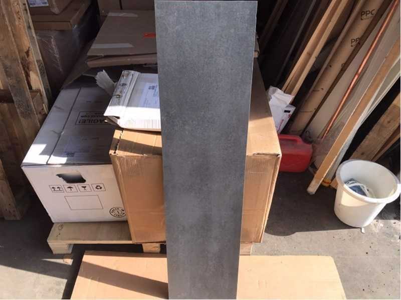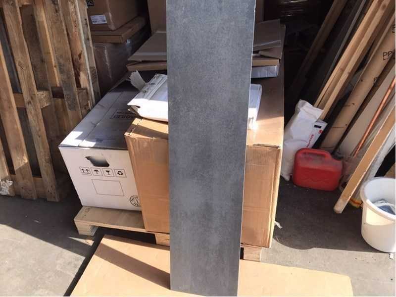 2 pallets Bezorgtermijn 14 dagen Merk: Villeroy&Boch Kleur: Antraciet Afwerking: mat Lengte: 300mm Breedte: 1200mm Dikte: 10mm Materiaal: Keramiek Type: Vloertegel Model: Metallic Illusion Aantal m² per verpakking: 1.44m² Aantal pakken: 44 Totaal oppervlakte: 63,36m² Totaal gewicht: 1260kg