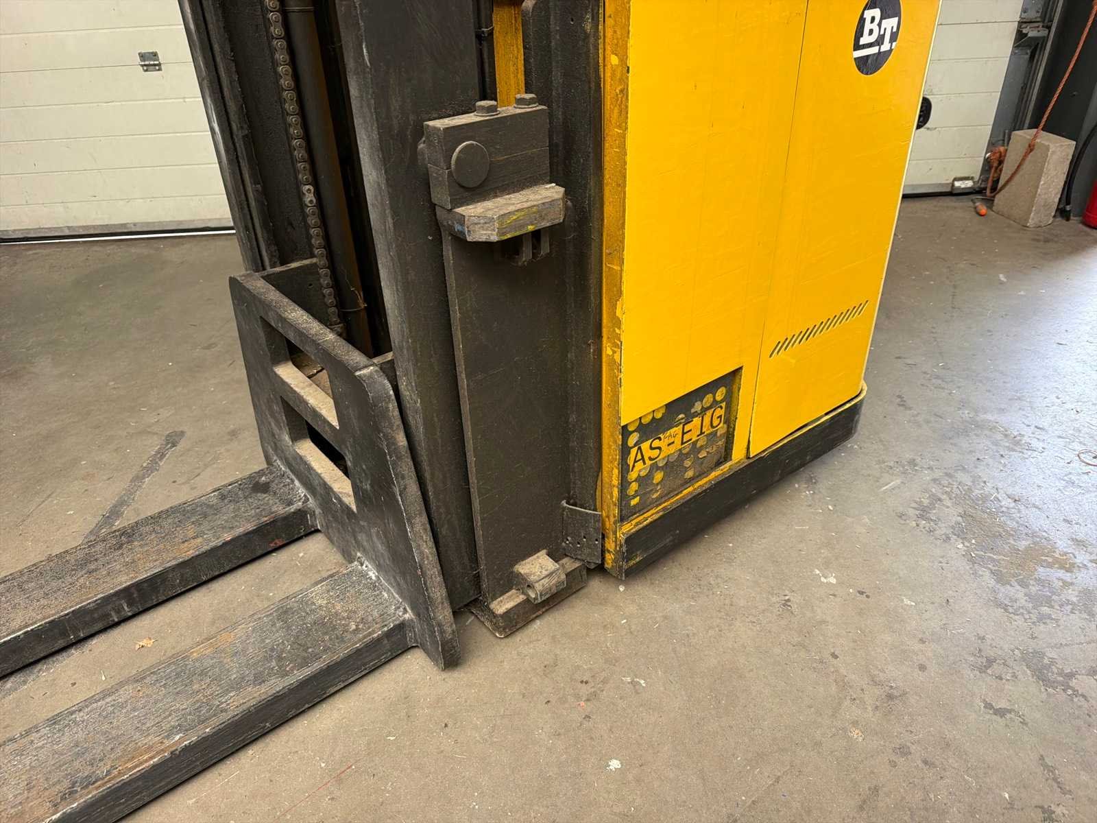 Merk: BT Type: SPS 1.6/3 Bouwjaar: 2006 Serienummer: 954939/2006 Hefvermogen: 1600kg Hefhoogte: 3750mm Lepellengte: 1150mm Minimale doorrijhoogte: 2420mm