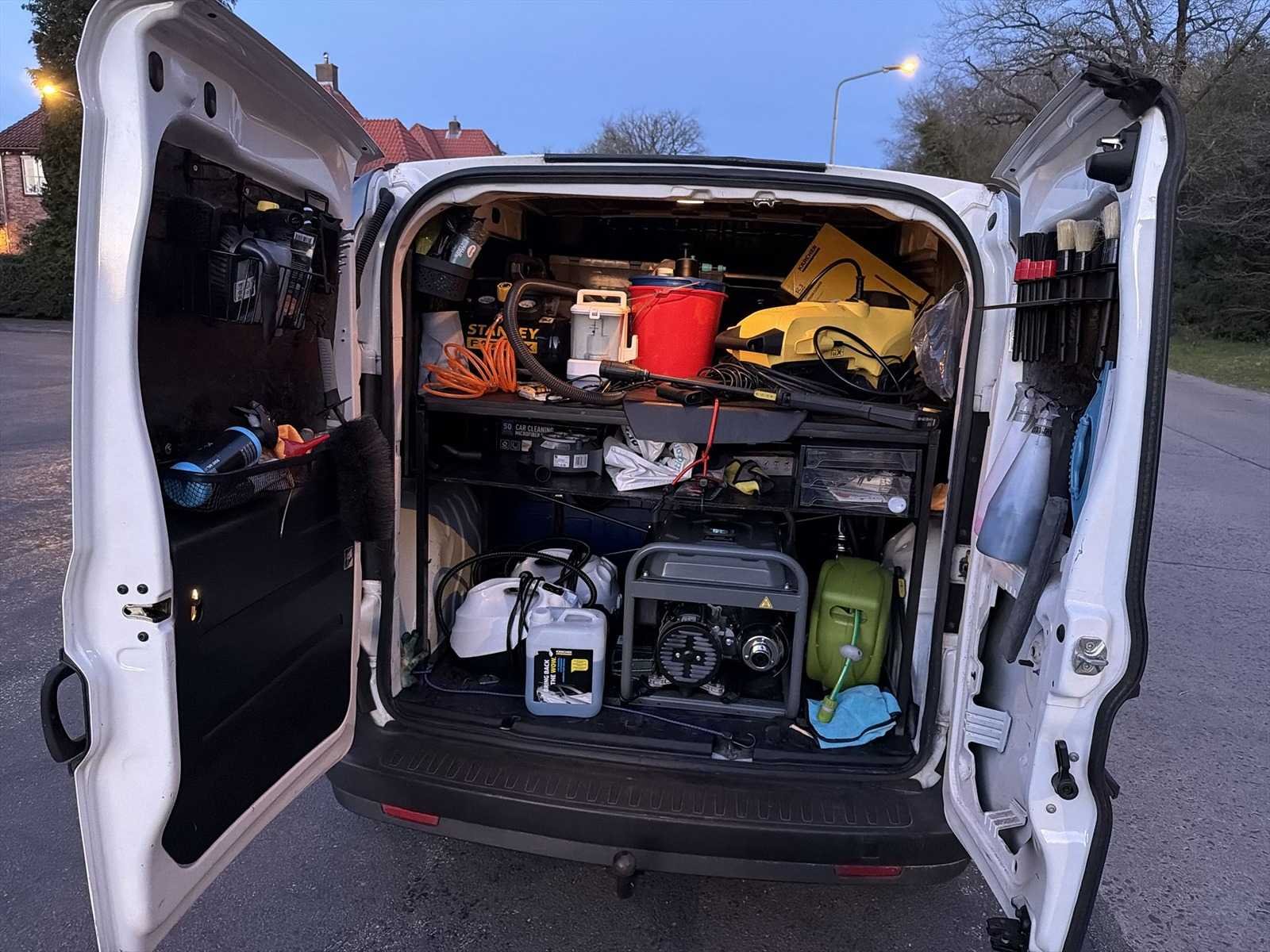CARWASH CAR Aanwezige apparatuur / inrichting - 280 liter watertank - Generator - Hogedrukspuit - Spuitslang - Luchtslang - Luchtspuit / blaaspistool - Compressor (voor o.a. banden oppompen) - Stoomreiniger / stoomapparatuur - Stofzuiger / nat- en droogzuiger - Opbergsysteem / werkindeling achterin - Reinigingsaccessoires en toebehoren Geschikt voor o.a. - Exterieur reiniging - Interieurreiniging - Stoomreiniging - Velgen / banden reinigen - Op locatie auto’s wassen - Mobiele detailing service Kenteken: V-520-BP Merk: Opel Type: 1.3 CDTi L1H1 Edit. Model: Combo Chassisnummer: W0L6ZYC1AF9559704 Afgelezen kilometerstand: 154755km Cilinderinhoud: 1248cc Vermogen (kW): 66kW Brandstof: Diesel Datum eerste toelating: 2014-12-16 APK vervaldatum: 2027-01-15 Transmissie: Handgeschakeld Aantal zitplaatsen: 2 Kleur: niet van toepassing Stuurwiel: Linksgestuurd Bruto BPM (NL): 5566 Aantal sleutels: 2 Ledig gewicht: 1265kg Vermogen (pk): 89 Aantal cilinders: 4 Carrosserie: Gesloten opbouw Emissieklasse: 5 Onderhoudshistorie: Ja, aanwezig, danwel digitaal Startinformatie: Start en rijdt Maximaal trekgewicht ongeremd: 500 Maximaal trekgewicht geremd: 1200
