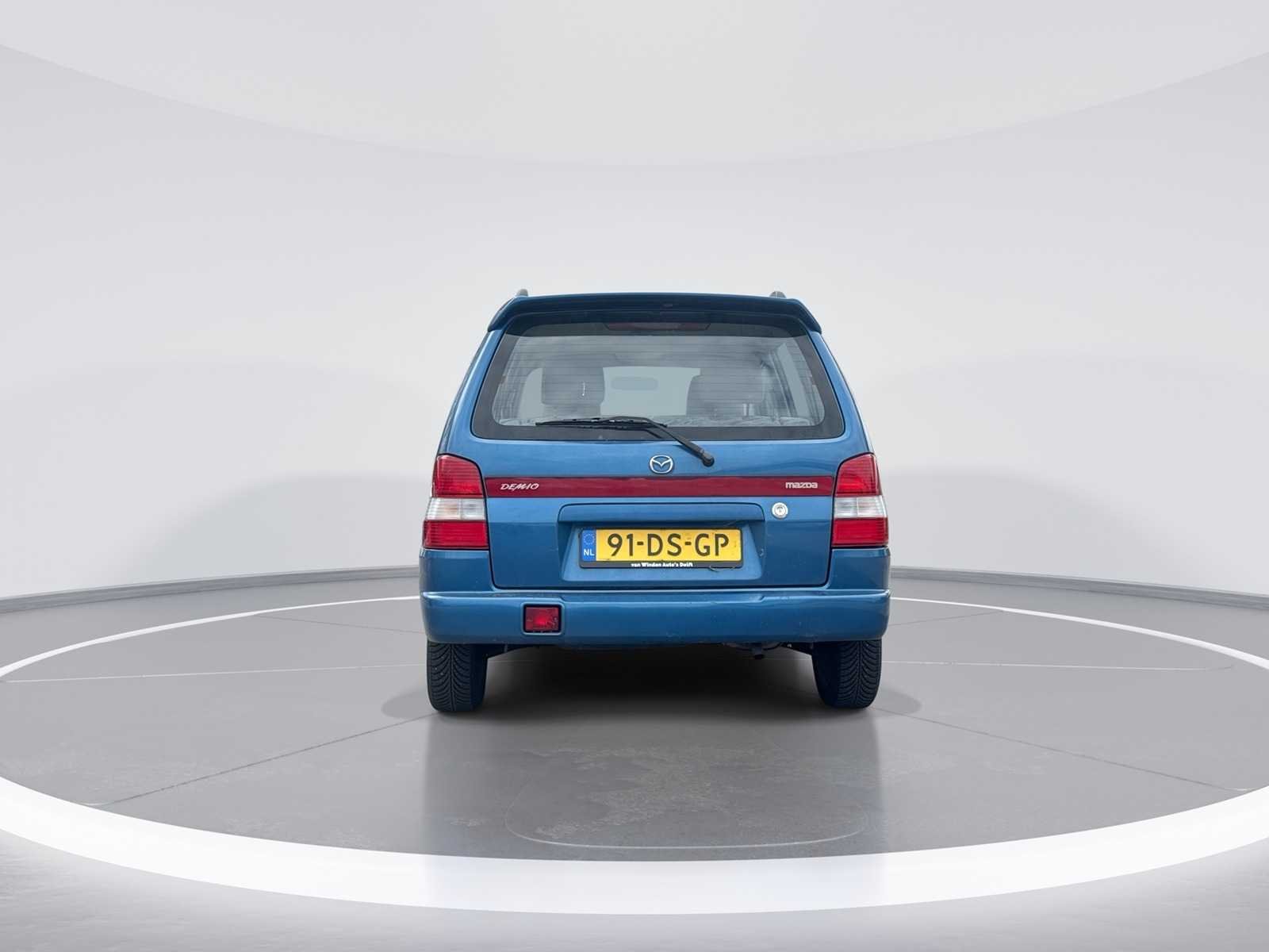 Kenteken: 91-DS-GP Merk: Mazda Model: Demio Type: 1.3 GLX Bouwjaar: 1999 Afgelezen kilometerstand: 159277km Cilinderinhoud: 1324cc Vermogen (kW): 46kW Brandstof: Benzine Chassisnummer: JMZDW192200139825 NAP status: Logical Datum eerste toelating: 1999-11-15 APK vervaldatum: 2026-04-14 Vermogen (pk): 62hp Aantal zitplaatsen: 5 Maximaal trekgewicht ongeremd: 410kg Maximaal trekgewicht geremd: 900kg Kleur: blauw Transmissie: Handgeschakeld Drive type: Front wheel Emissieklasse: 2 Aantal deuren: 4 Aantal sleutels: 1 Ledig gewicht: 925kg Bruto BPM (NL): 2634€ Aantal cilinders: 4 Carrosserie: Stationwagen Carfax Link: https://was.carfax.eu/v0/api/ccdid/5100016408/svc/201/vinreg/91DSGP/checksum/eyJhbGciOiJIUzI1NiIsInR5cCI6IkpXVCJ9.eyJleHAiOjE3ODIwNTA0MjR9.Fh12Xhm6LZqAClT5jkACJWMMDsdtJfvJIvf2fsxQlII startinformatie : Start en rijdt Self drive export possible : true Airconditioning: true Navigatie: false LED-koplampen: false