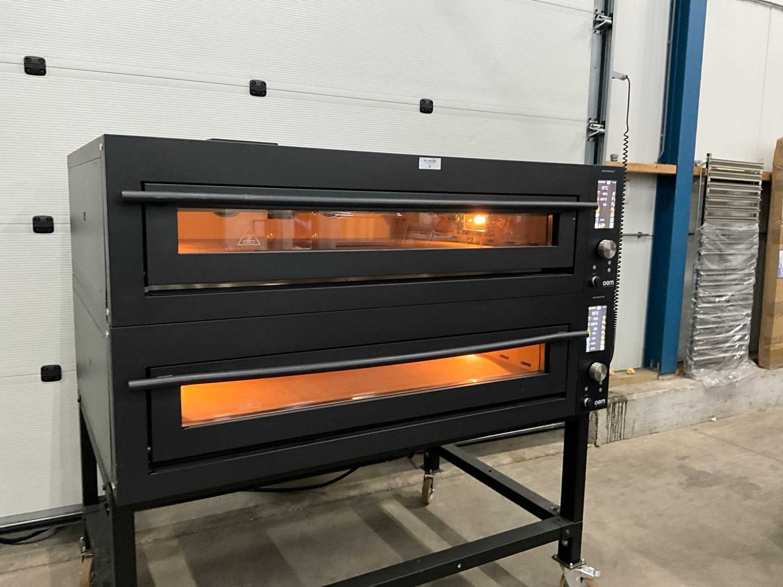 Demo model; op verrijdbaar onderstel ; voor 2 x 6 pizza’s ; 18 KW per oven Merk: OEM Type: VARIO 659L DG Aansluiting: 400V Vermogen: 36kW Elektrisch: true Touchscreen bediening: true Lengte: 160cm Breedte: 140cm Hoogte: 170cm