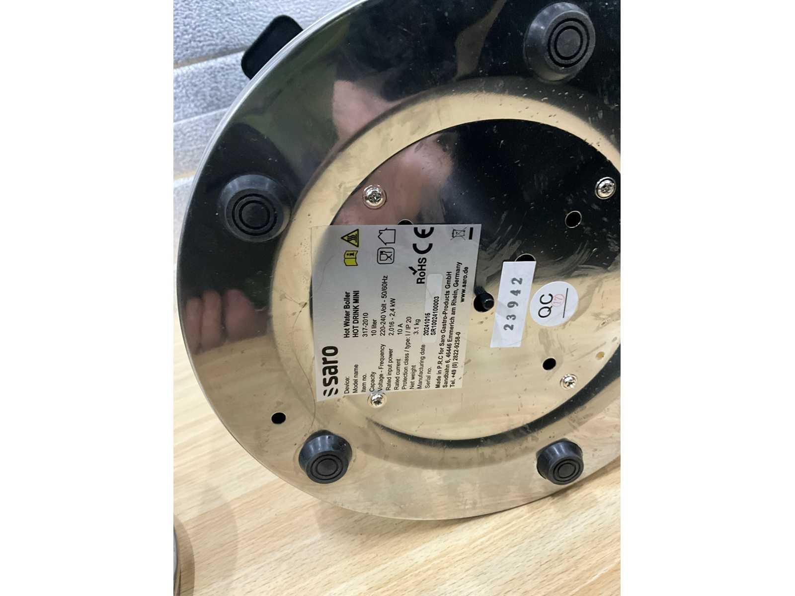 2,4 KW; inhoud 10 liter ; diameter 23 cm Merk: Saro Type: Hot drink mini Aansluiting: 230V Hoogte: 50cm