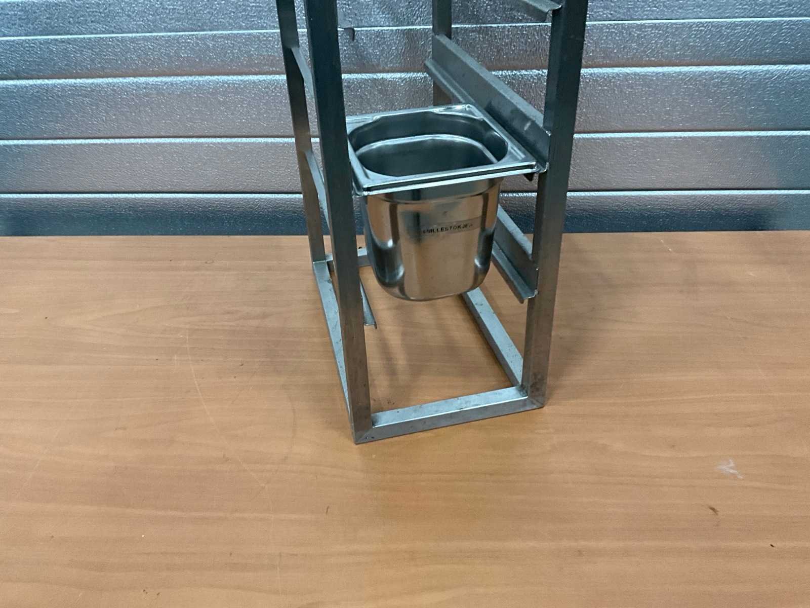 Voor 6-laags 1/4 of 1/6 GN bakken.; inclusief 1 1/6 GN bak. Rvs: true Lengte: 21cm Breedte: 37cm Hoogte: 85cm