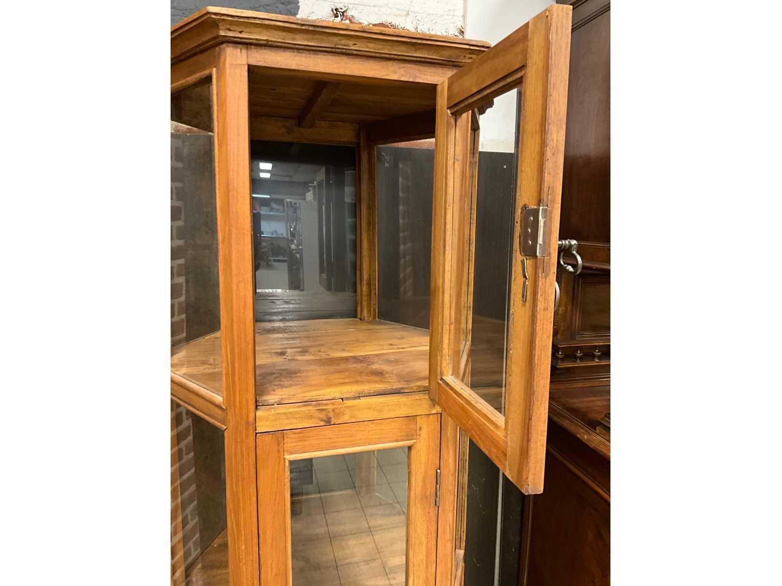 Voorzien van 2 deuren en glas. Lengte: 78cm Breedte: 70cm Hoogte: 176cm
