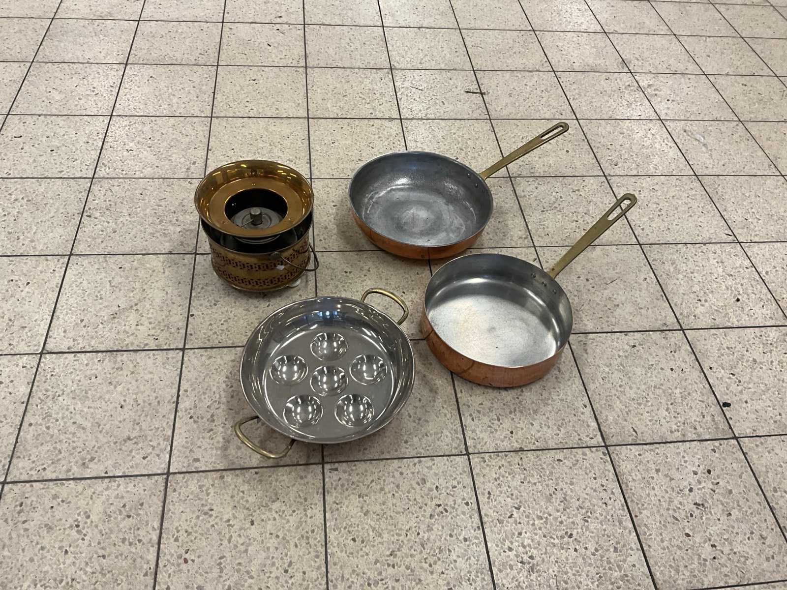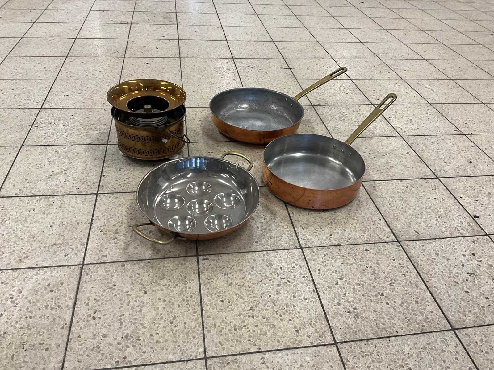 Koperen pannen en brander (4x)