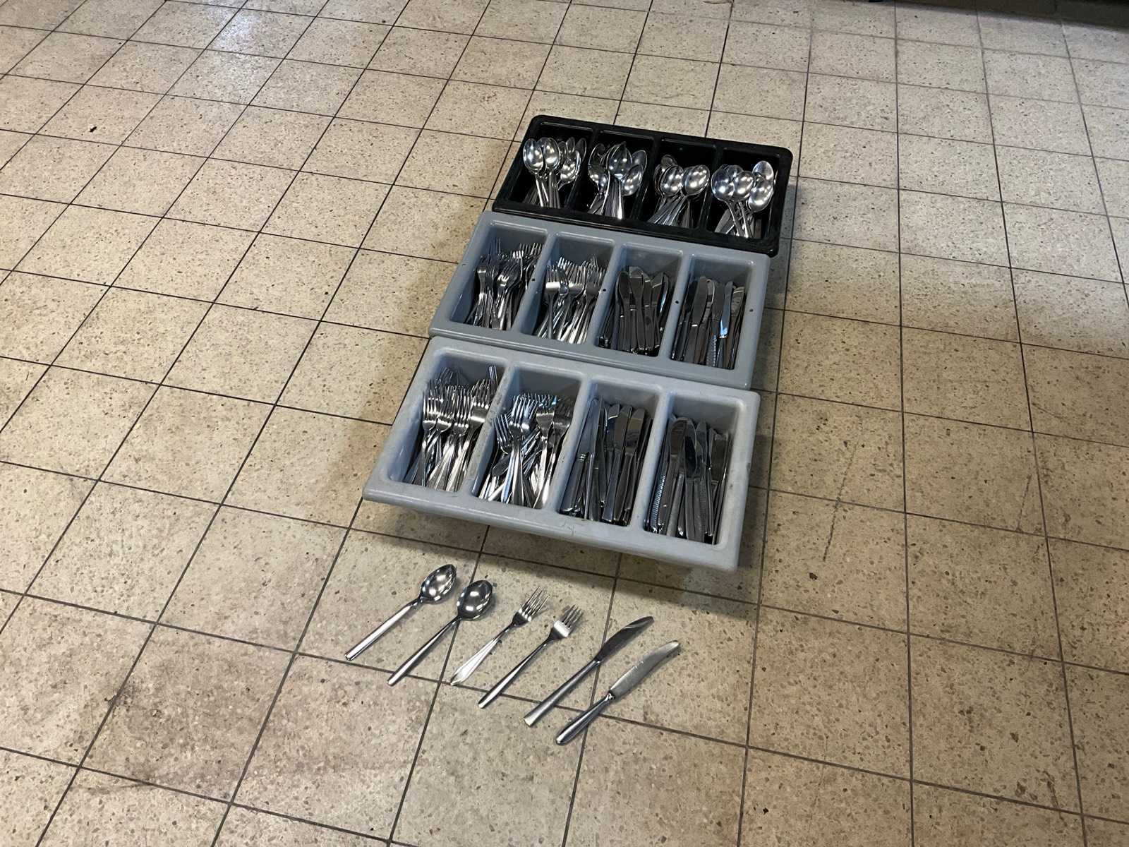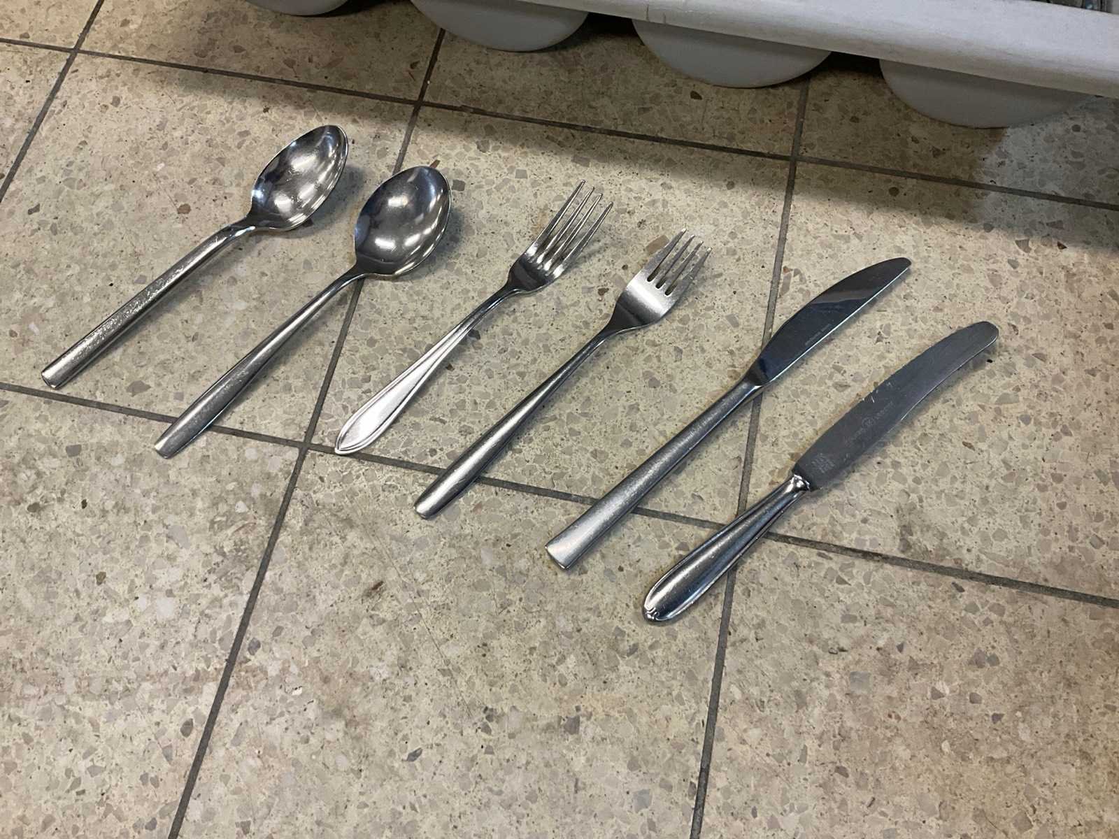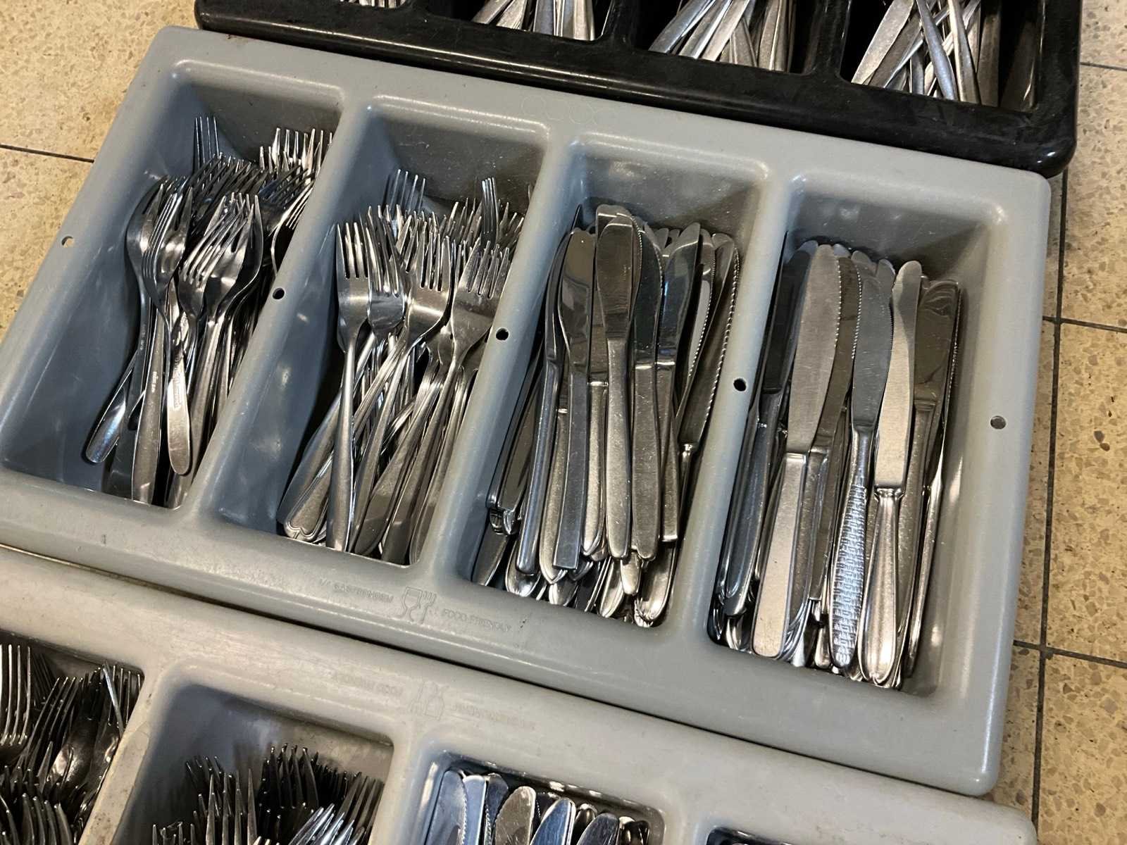 200 x vork; 200 x mes en 200 x lepel; niet identiek; inclusief 3 bestekbakken. Totale afmeting L: 20cm