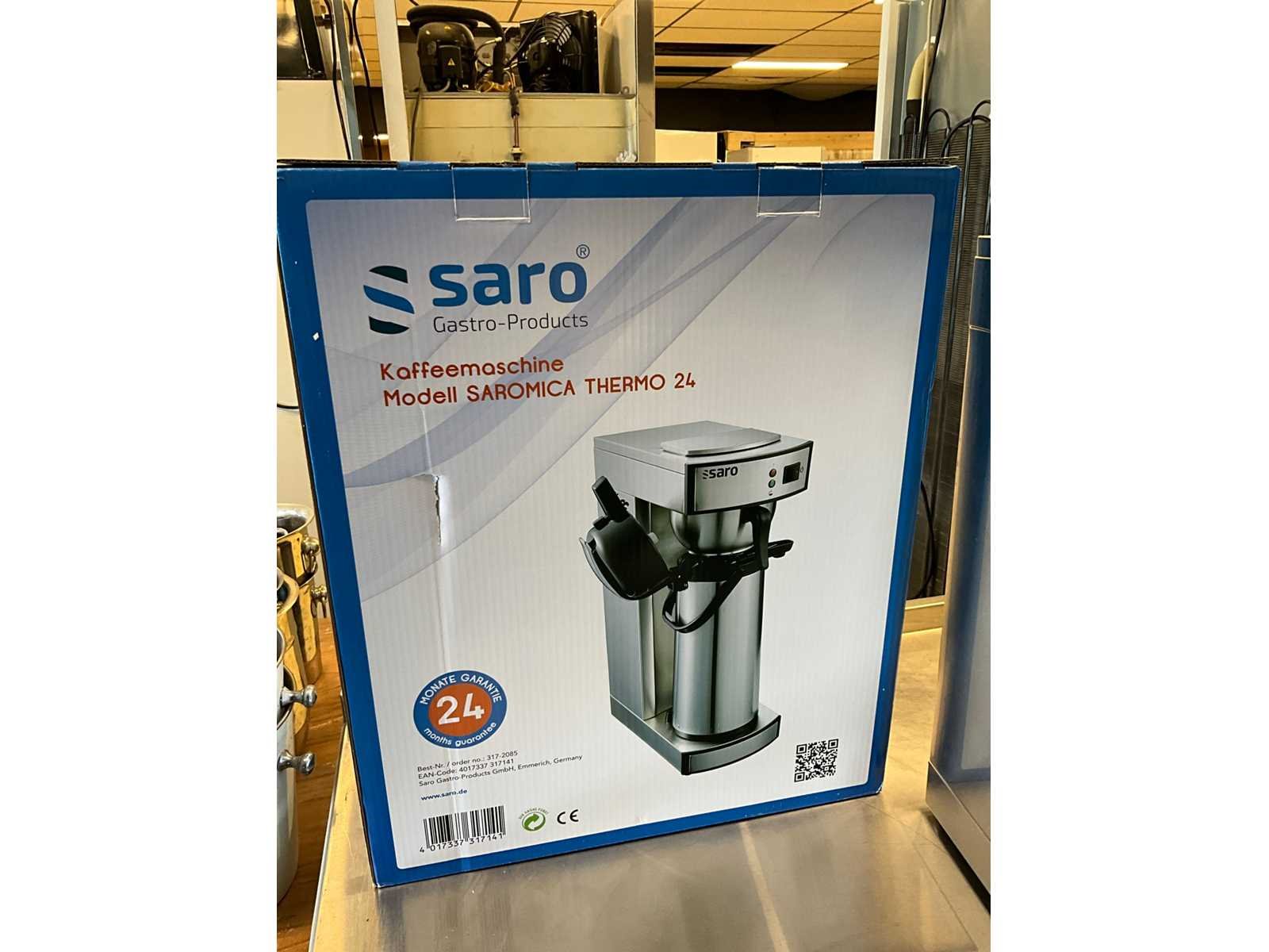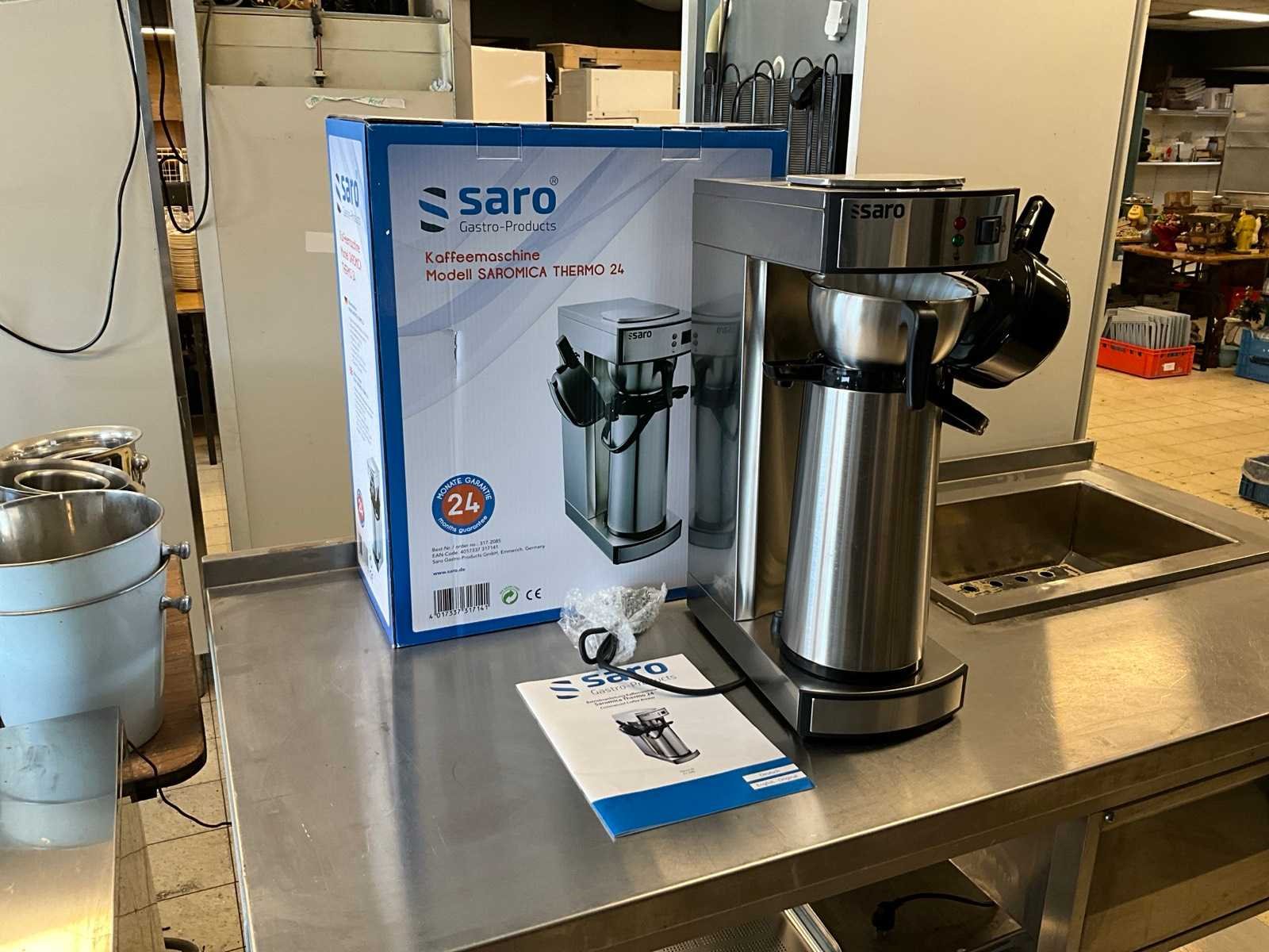 Ongebruikt; inclusief thermoskan 2,2 liter inhoud.; 1900 watt. Merk: Saro Type: Sarmonica Thermo 24 Aansluiting: 230V Rvs: true Totale afmeting L: 195mm Totale afmeting Breedte: 360mm Totale afmeting Hoogte: 550mm