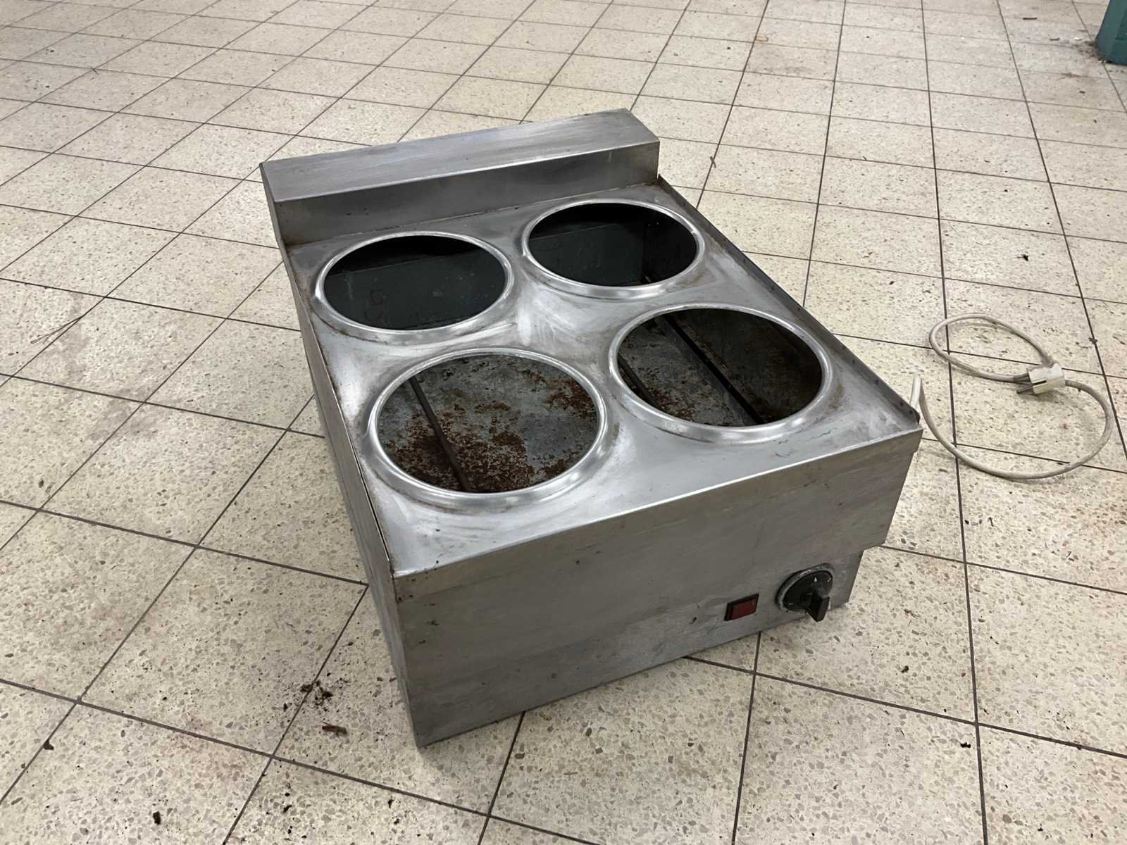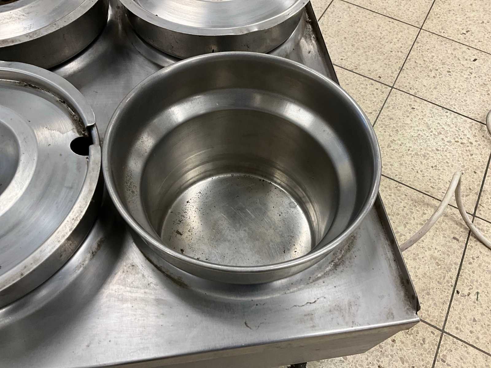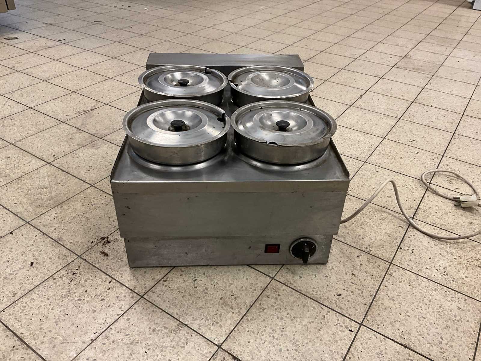 750 watt.; voor 4 pots met deksel. Merk: Lincat Type: BM4 Totale afmeting L: 45cm Totale afmeting Breedte: 61cm Totale afmeting Hoogte: 32cm Rvs: true Regelbare thermostaat: true Aansluiting: 230V