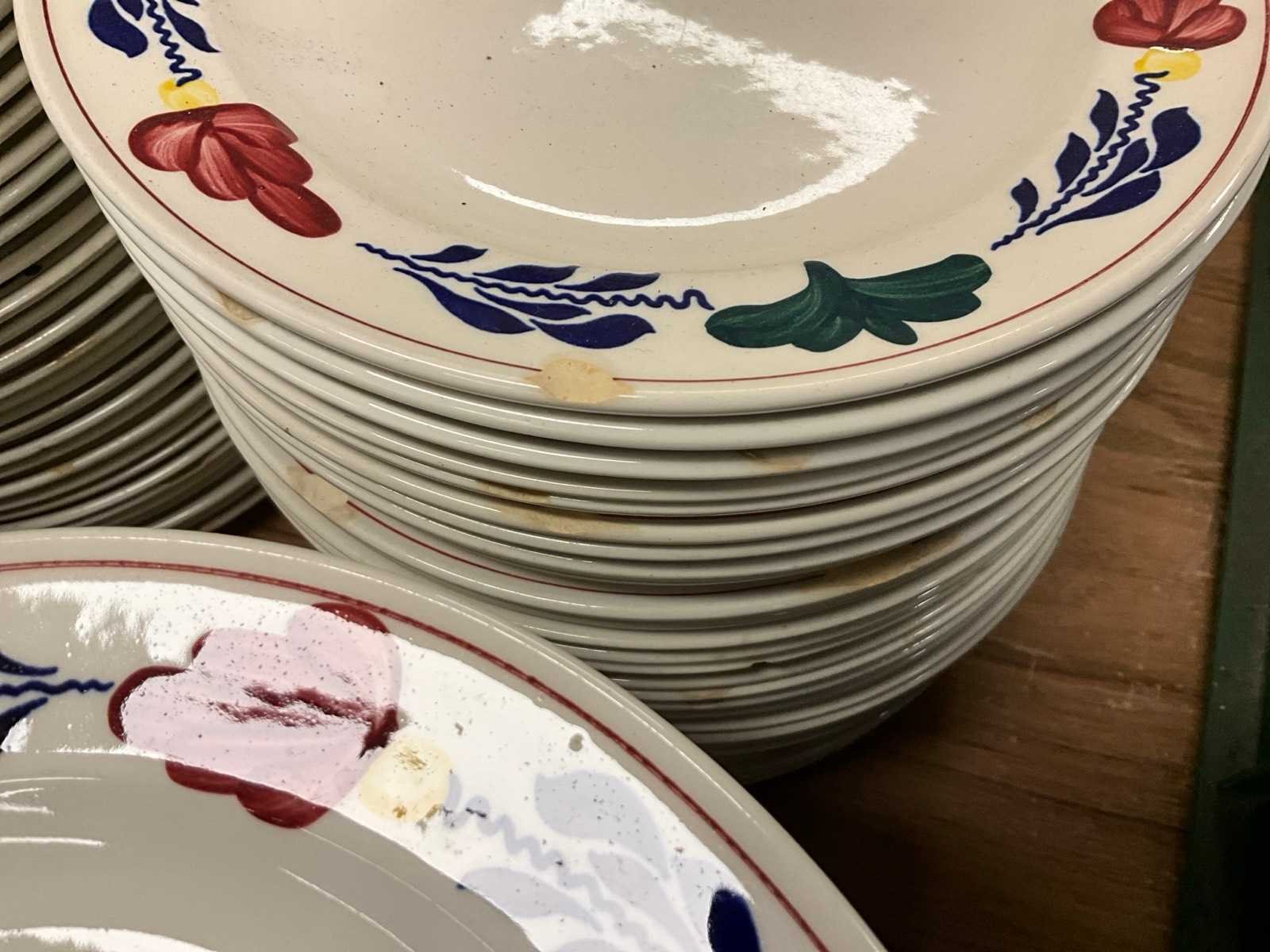 Diverse borden zijn beschadigd en er zijn scherven af Merk: Boerenbont Diameter ca.: 21