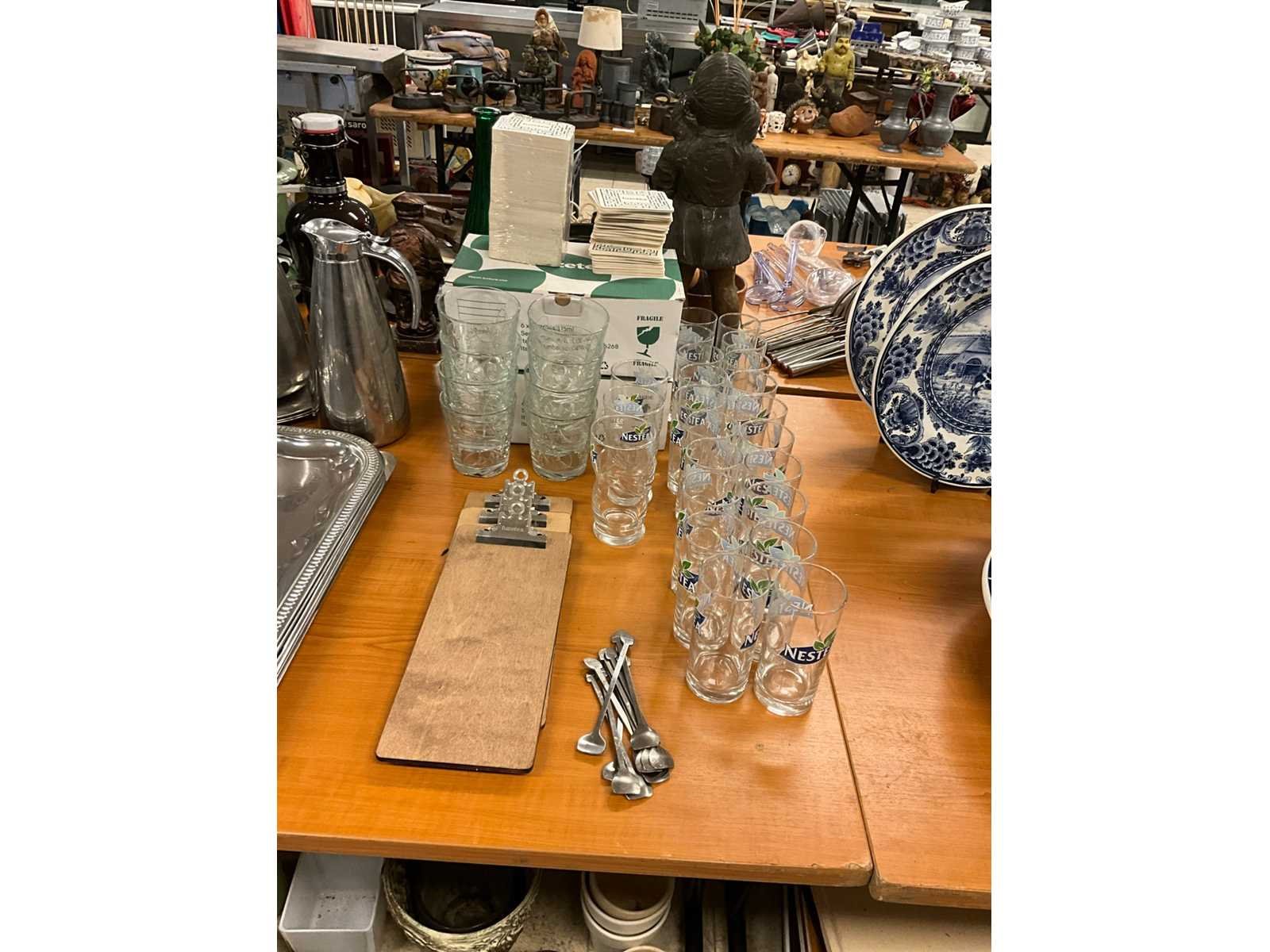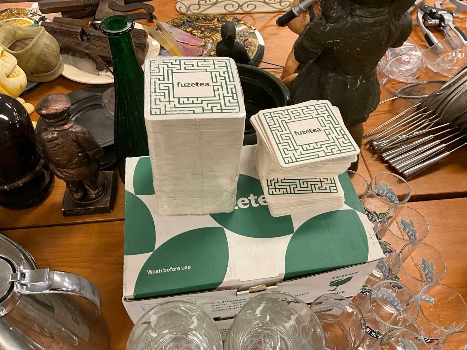 Inclusief lepels, viltjes en houders. Merk: Fuzetea & Nestea