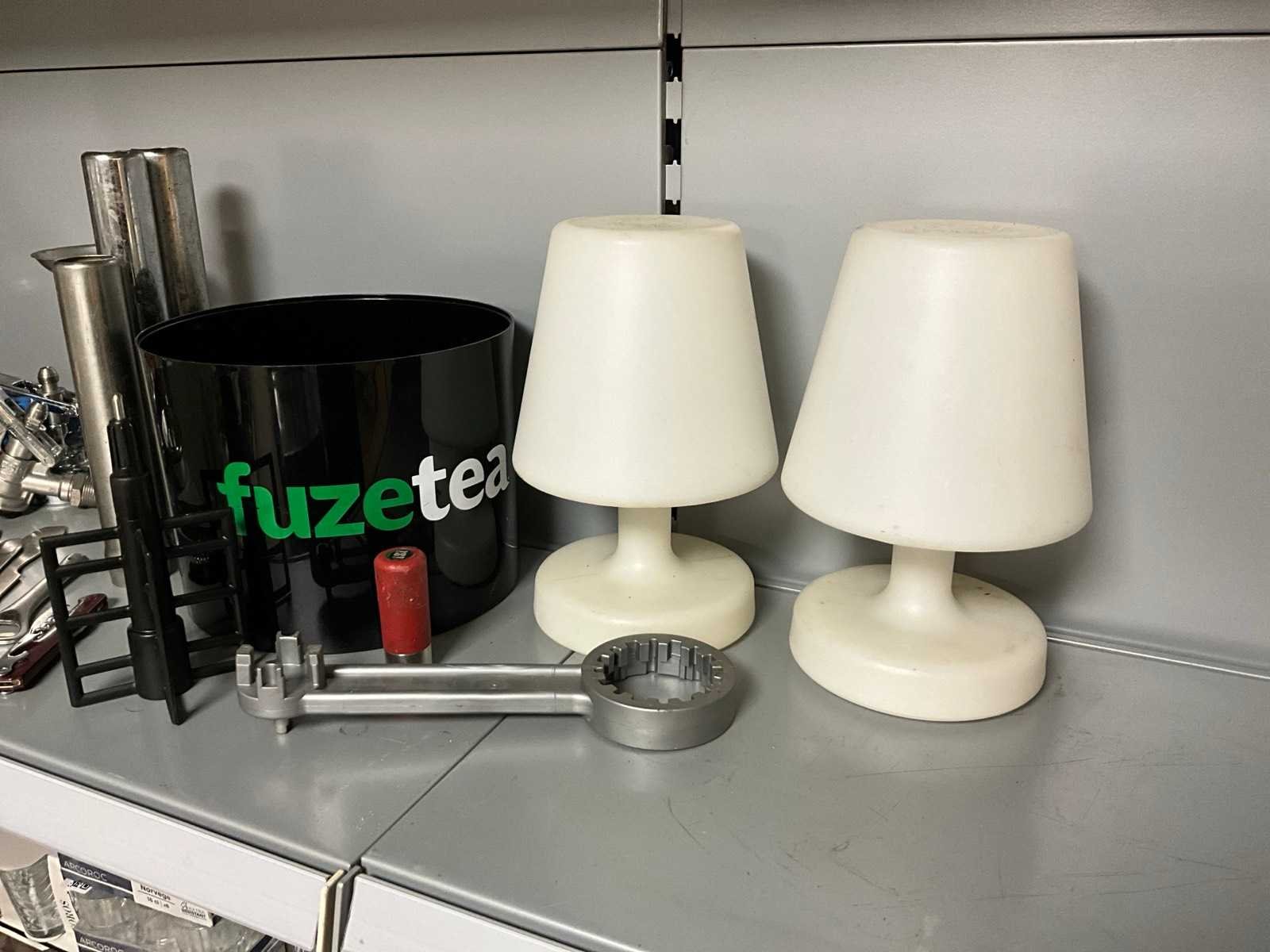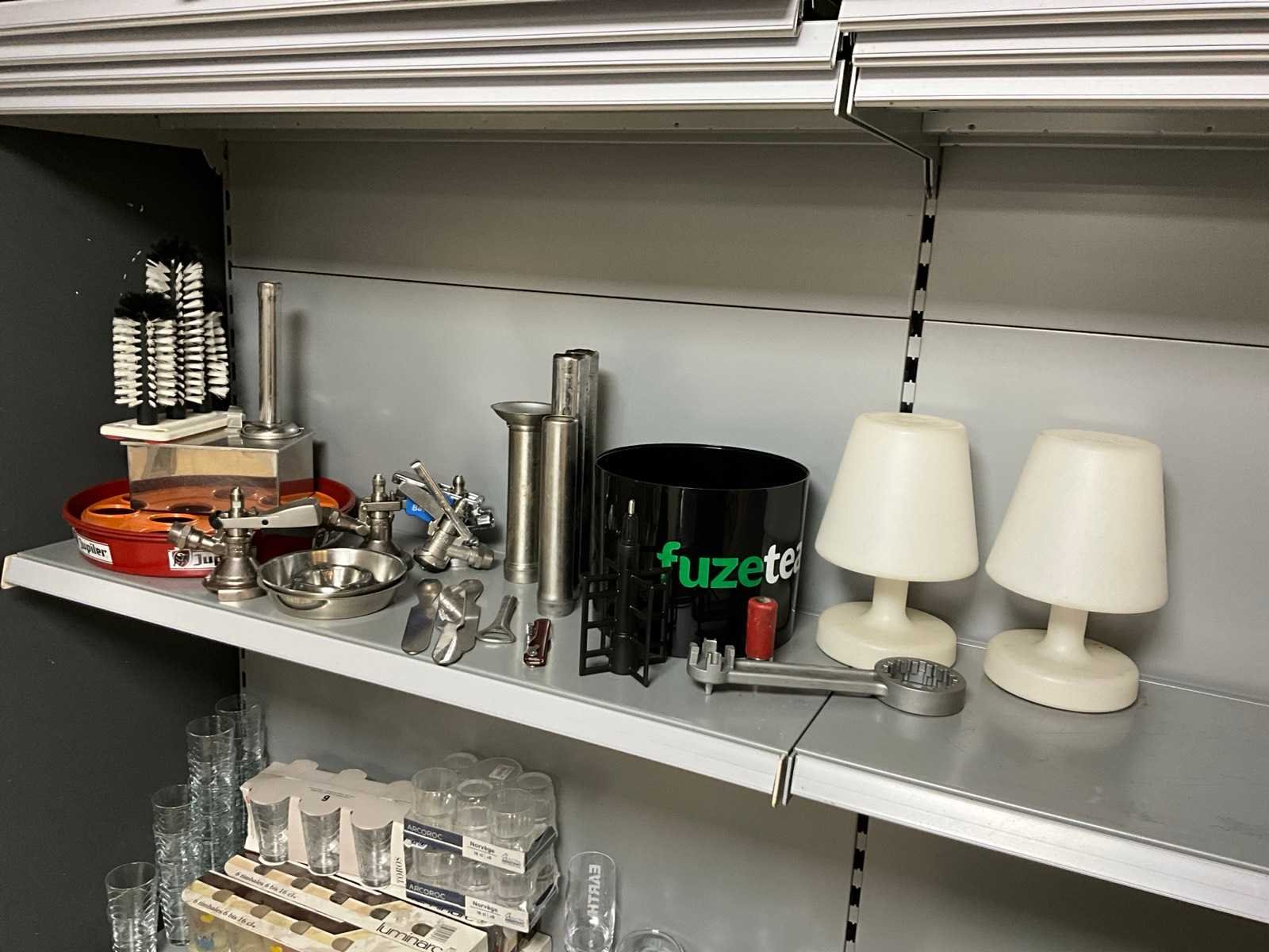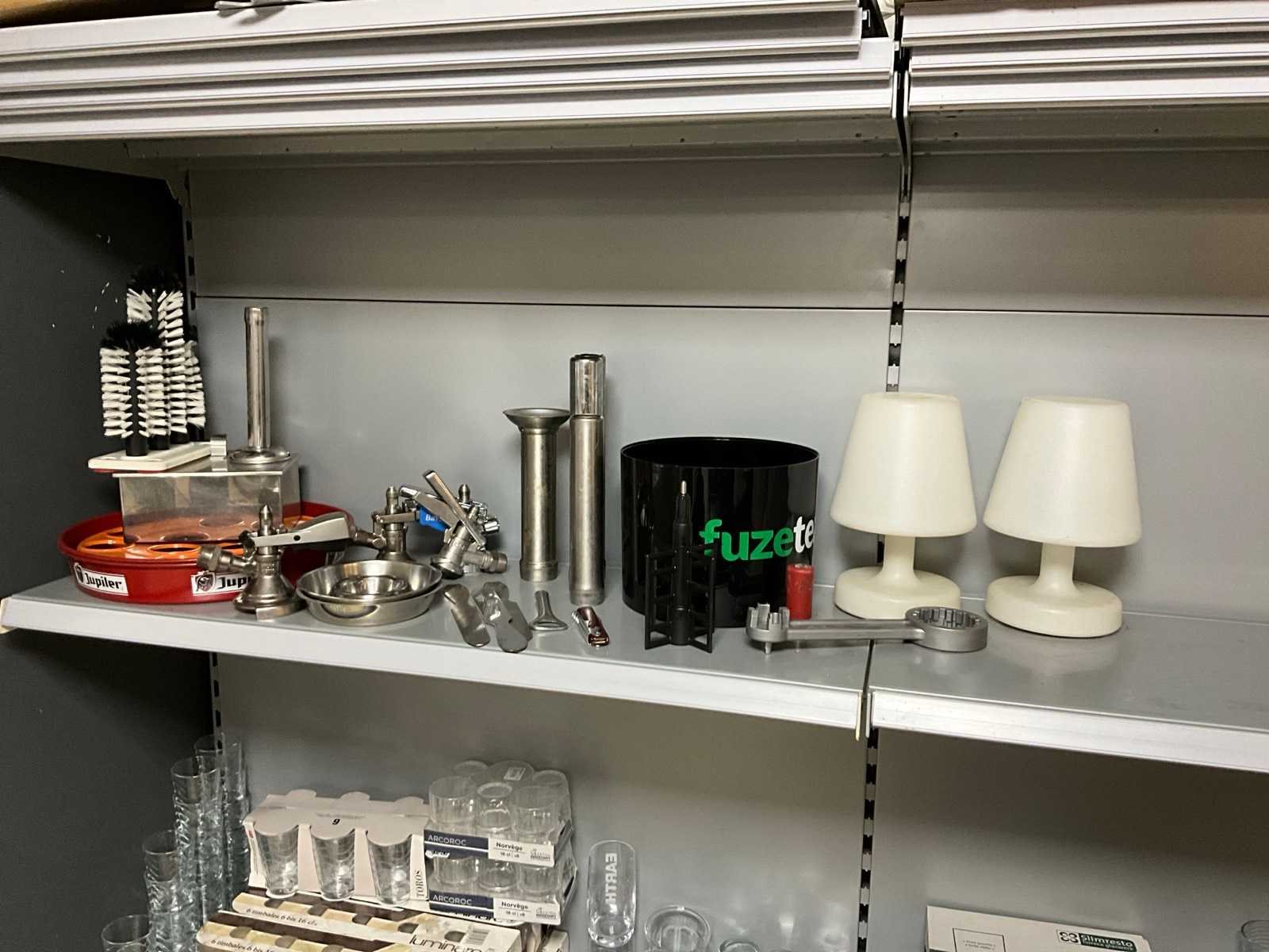 Fustkoppelingen, glazenspoeler, ijsbunker en lampen.