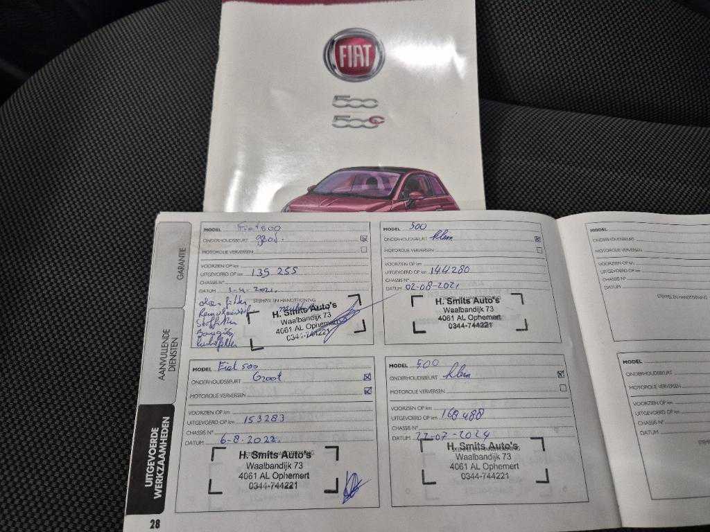 Kenteken: 68-ZXG-7 Merk: Fiat Model: 500 Type: 1.0 TwinAir Lounge Bouwjaar: 2013 Afgelezen kilometerstand: 177428km Cilinderinhoud: 964cc Vermogen (kW): 48kW Brandstof: Benzine Chassisnummer: ZFA31200000939831 NAP status: Logical Datum eerste toelating: 2013-02-28 APK vervaldatum: 2026-08-05 Vermogen (pk): 64hp Aantal zitplaatsen: 4 Maximaal trekgewicht ongeremd: 800kg Maximaal trekgewicht geremd: 400kg Kleur: zwart Transmissie: Handgeschakeld (5) Drive type: Front wheel Stuurwiel: links Emissieklasse: 5 Aantal deuren: 2 Ledig gewicht: 840kg Aantal cilinders: 2 Carrosserie: Hatchback Onderhoudshistorie: Ja gedeeltelijk Carfax Link: https://was.carfax.eu/v0/api/ccdid/5100016408/svc/201/vinreg/68ZXG7/checksum/eyJhbGciOiJIUzI1NiIsInR5cCI6IkpXVCJ9.eyJleHAiOjE3ODE2OTU2Nzh9.hv1TFzwUYC1F0urMogWHm4U6WGHo5i4dV2ObqpNK87o startinformatie : Start en rijdt