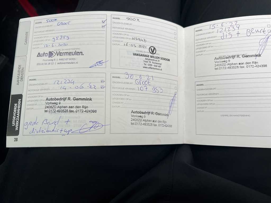 LET OP!: voor Nederlandse kopers en kopers van buiten de EU komt de Rest-BPM er nog bij. Deze verschijnt later op de factuur en bedraagt €1067. Dus totale biedprijs + € 1067 De totaalprijs bij het bieden is dus excl. BPM! (This is only relevant for Dutch buyers and buyers from outside the EU) Voor bieders buiten Nederland maar binnen de EU geldt een borg van het BPM bedrag(1067). Deze borg krijgt u terug na het aantonen van de juiste registratie in het land van bestemming (buiten Nederland) Kenteken: KP-107-T Merk: Fiat Model: 500 X Type: 1.4 T M-Air PopStar Bouwjaar: 2016 Afgelezen kilometerstand: 174294km Cilinderinhoud: 1368cc Vermogen (kW): 103kW Brandstof: Benzine Chassisnummer: ZFA3340000P518717 NAP status: Logical Datum eerste toelating: 2016-11-03 APK vervaldatum: 2026-11-03 Vermogen (pk): 138hp Aantal zitplaatsen: 5 Maximaal trekgewicht ongeremd: 1200kg Maximaal trekgewicht geremd: 600kg Kleur: rood Transmissie: Semi-Automatisch (6) Drive type: Front wheel Stuurwiel: links Emissieklasse: 6 Aantal deuren: 5 Ledig gewicht: 1295kg Aantal cilinders: 4 Carrosserie: MPV Onderhoudshistorie: Ja gedeeltelijk Carfax Link: https://was.carfax.eu/v0/api/ccdid/5100016408/svc/201/vinreg/KP107T/checksum/eyJhbGciOiJIUzI1NiIsInR5cCI6IkpXVCJ9.eyJleHAiOjE3ODE2ODQxODV9.Xcm7xG14irtJM5e8z4iFDzCArg-C9eFurCHkqa-CSQY startinformatie : Start en rijdt