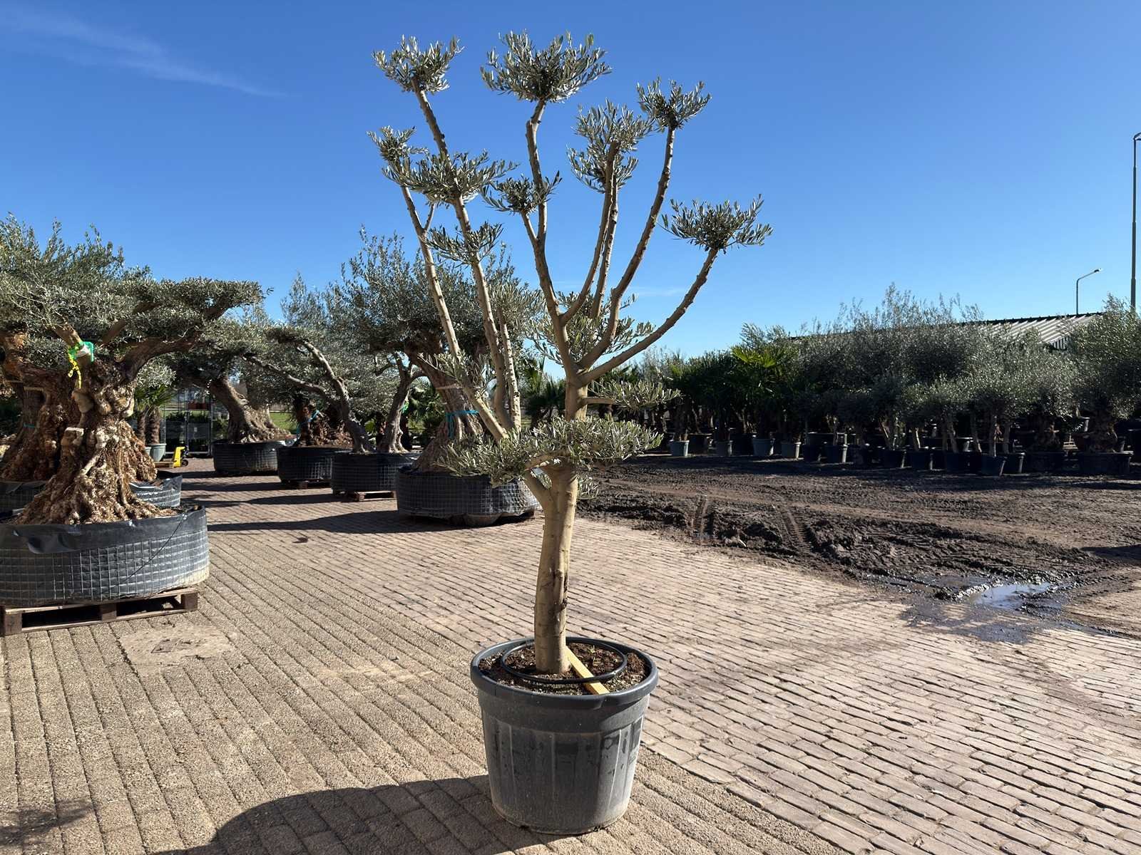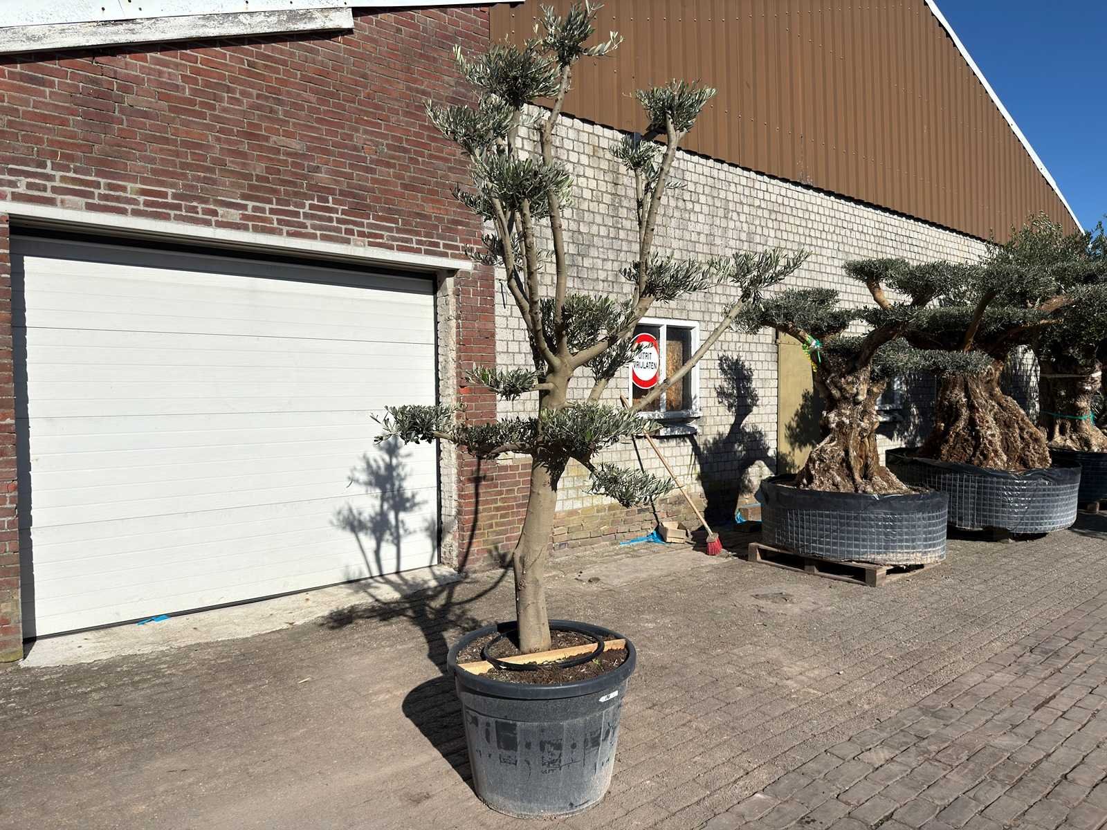 Type: Pompom Latijnse benaming: Olea Europaea Hoogte ca.: 250cm In pot: true Stamdikte: 50cm Leeftijd: 60 Eigen gewicht: 300