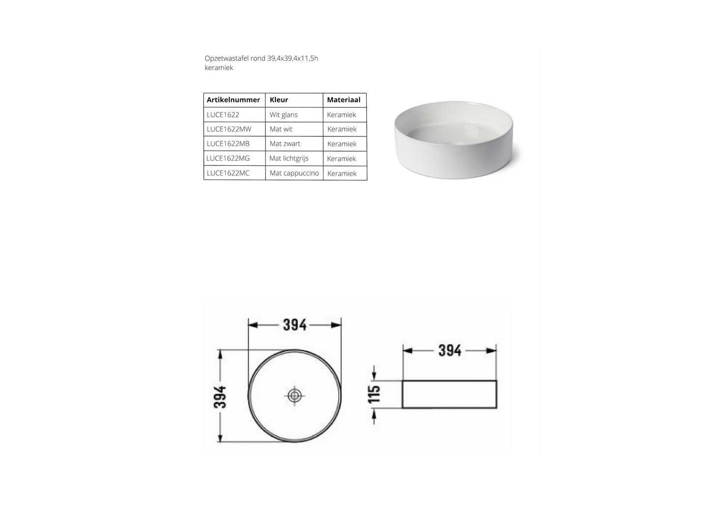 Luca sanitair - rond - luce1622mb - waskom 39,5 cm