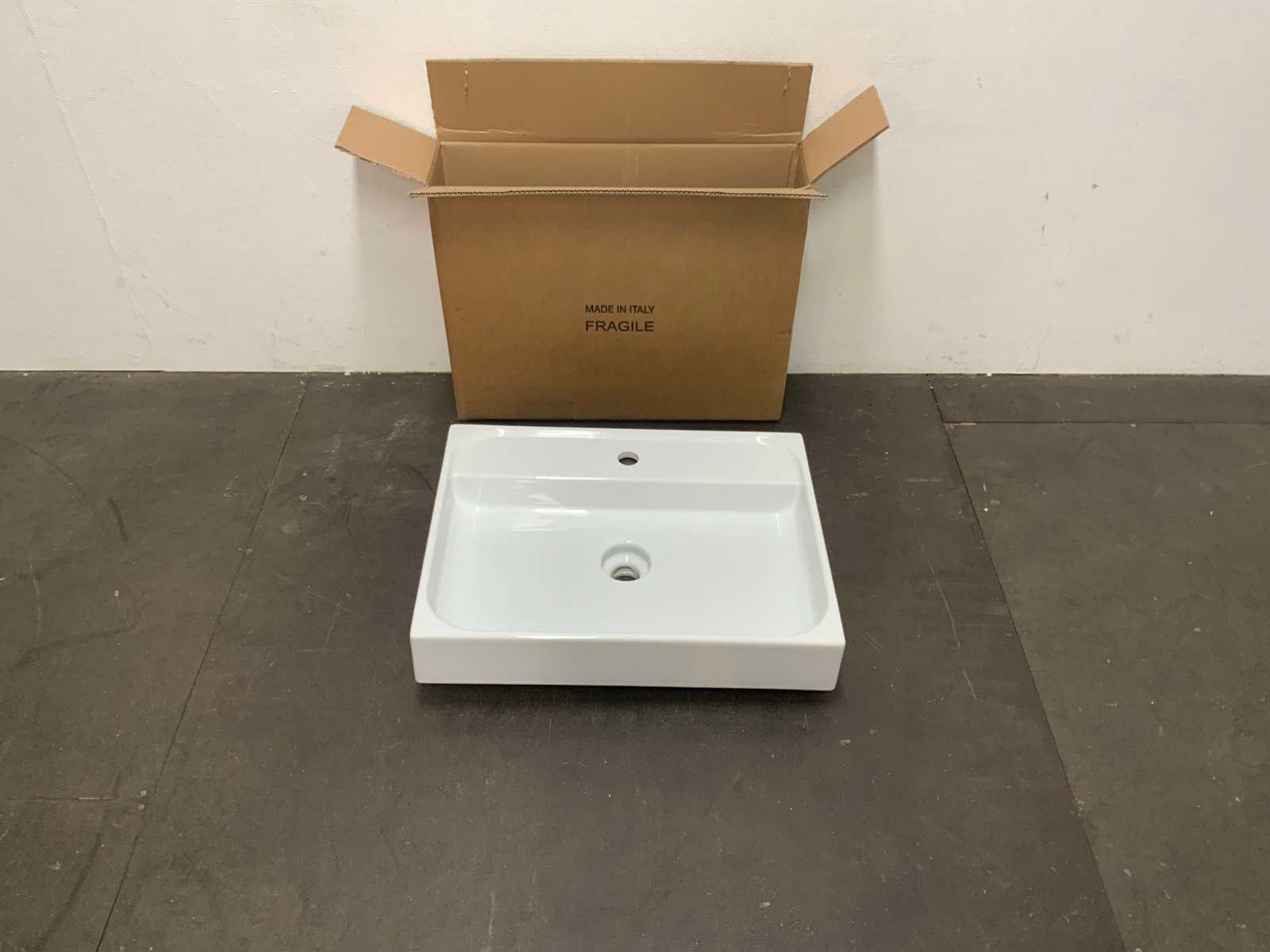 Merk: Valdama Model: WM600 RS1_112 Kleur: Wit Lengte: 61cm Breedte: 47cm Hoogte: 16cm Materiaal: Keramiek