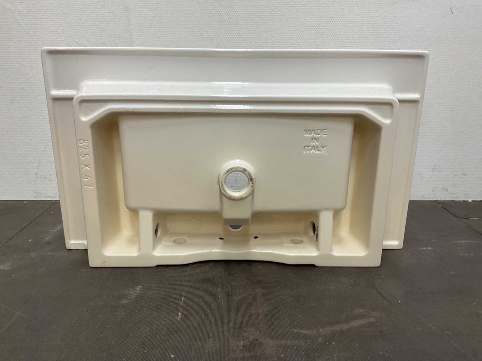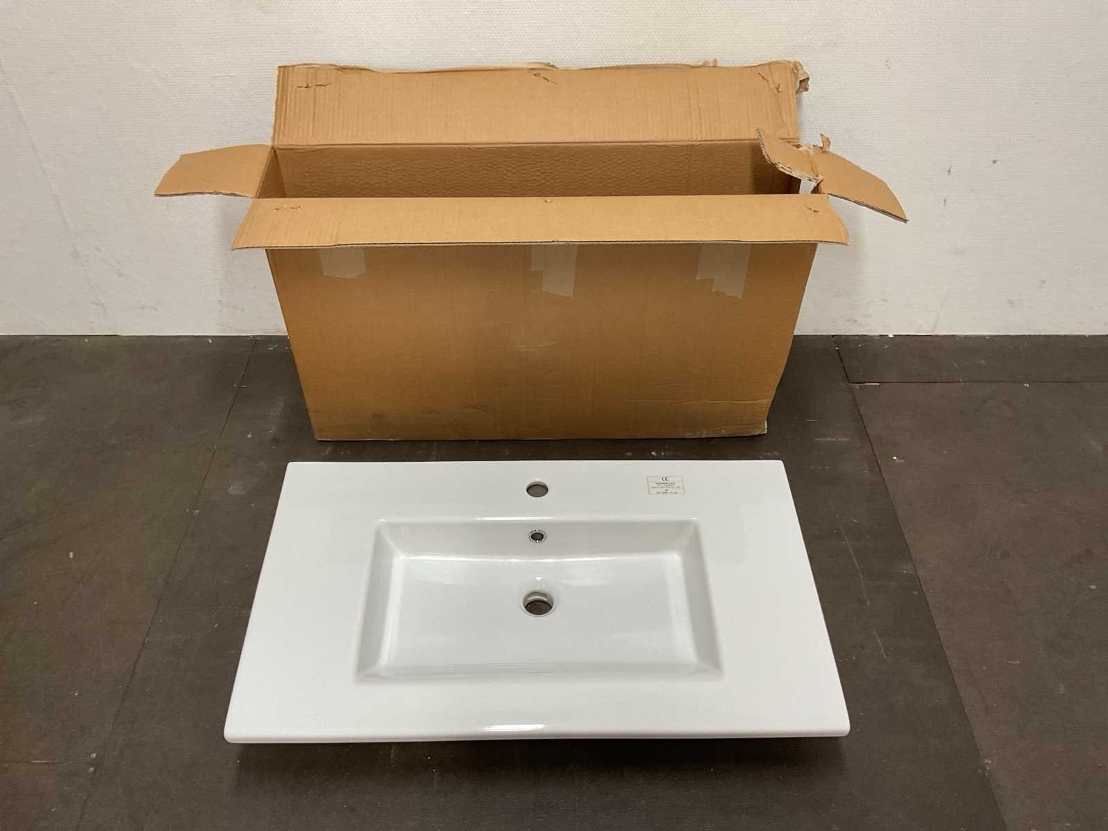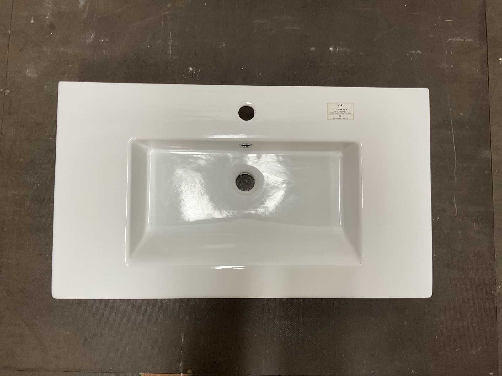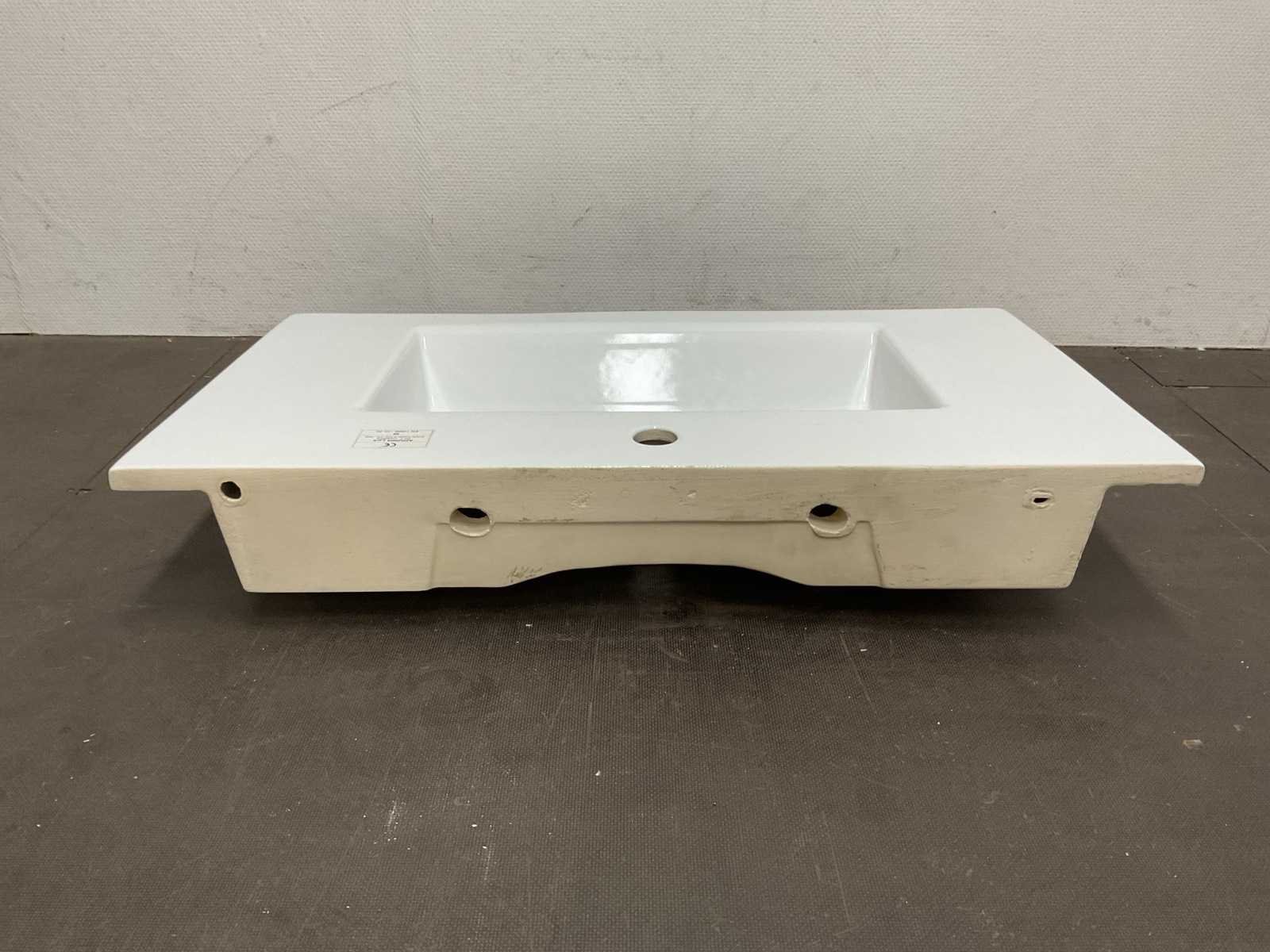 Met kraangat Merk: Primabad Model: WM825 DZK0_112 Kleur: Wit Lengte: 82.5cm Breedte: 47cm Hoogte: 14cm Materiaal: Keramiek