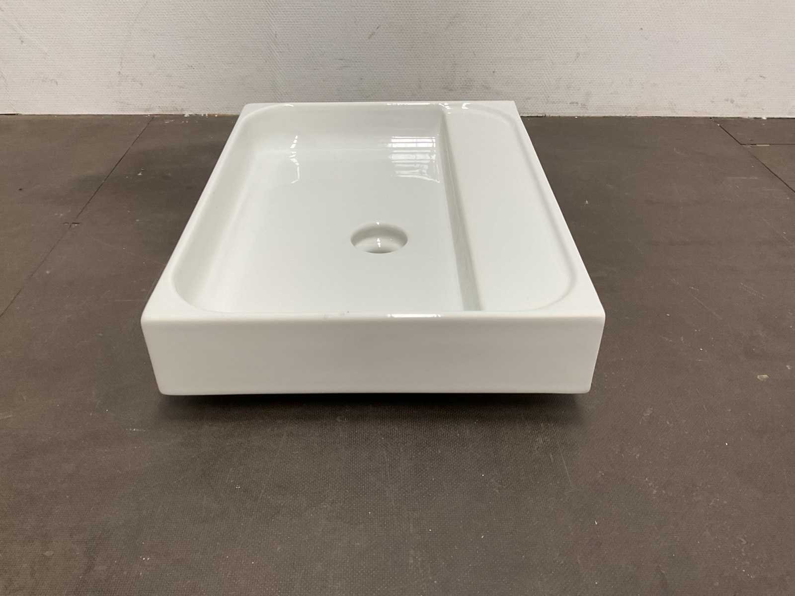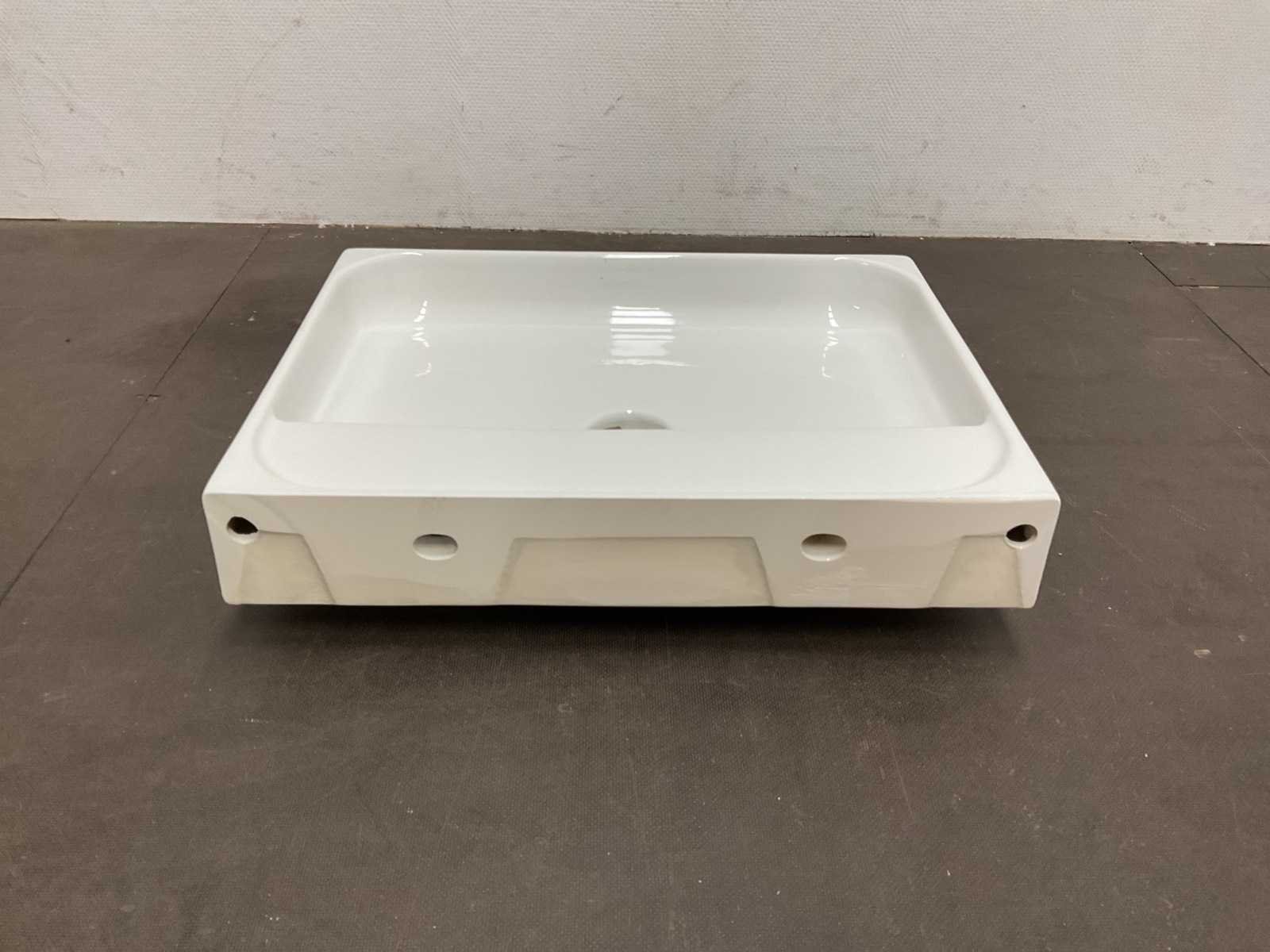 Merk: Valdama Model: Zonder kraangat Kleur: Wit Lengte: 60cm Breedte: 45cm Hoogte: 10cm Materiaal: Keramiek