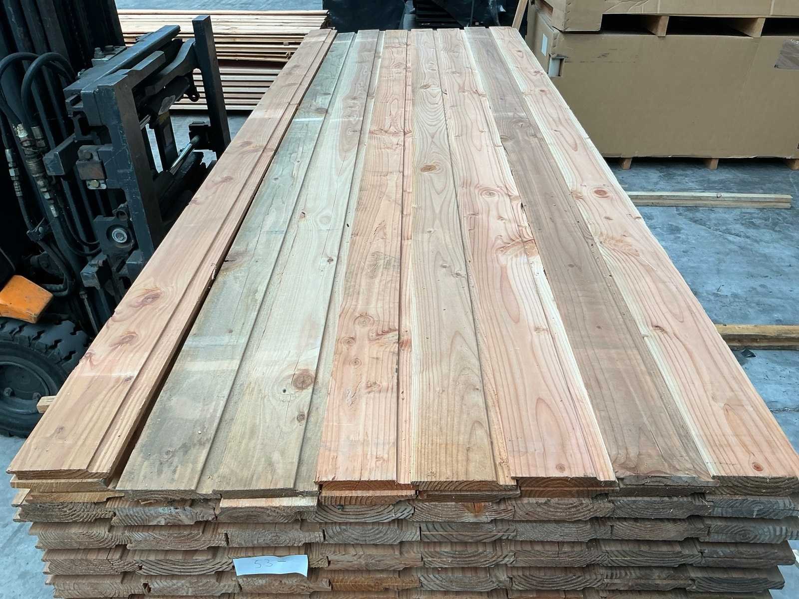 Werkende breedte 130 mm. Partij kan stoffig zijn, kleurverschil of lichte beschadigingen bevatten. Houtsoort: Douglas Lengte: 300cm Breedte: 140mm Hoogte: 18mm