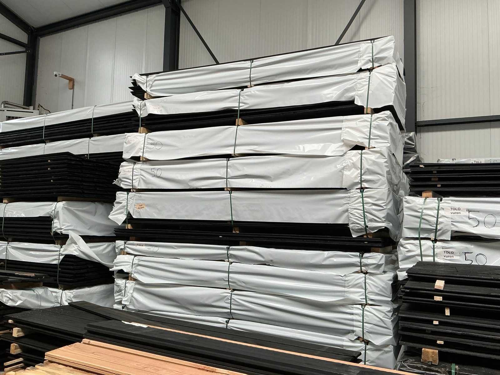 12~26 mm dik. 175 mm werkende breedte. Dubbel zwart gespoten. Planken met kopscheuren ca. 40 cm (1 zijde). Verpakt in plastic per 50 stuks. Op de foto’s 250 cm ter illustratie. Afmeting l: 4000mm Afmeting h: 195mm