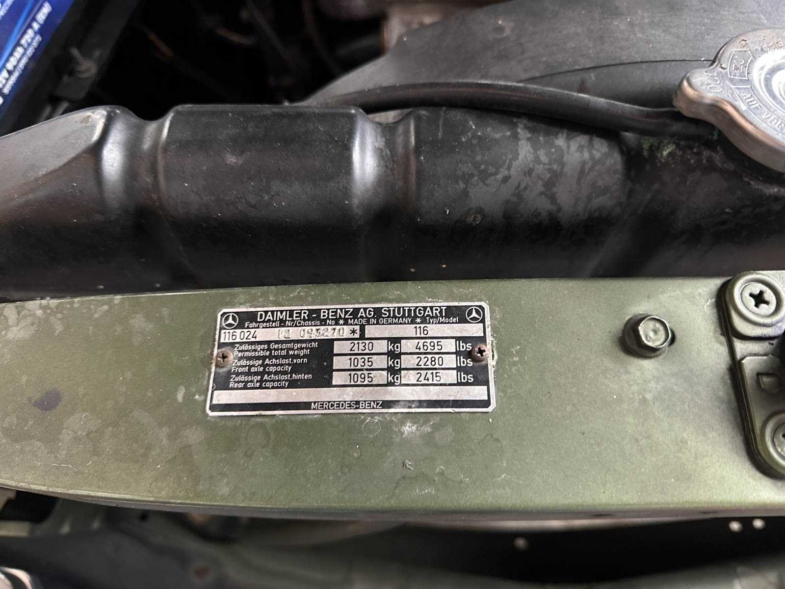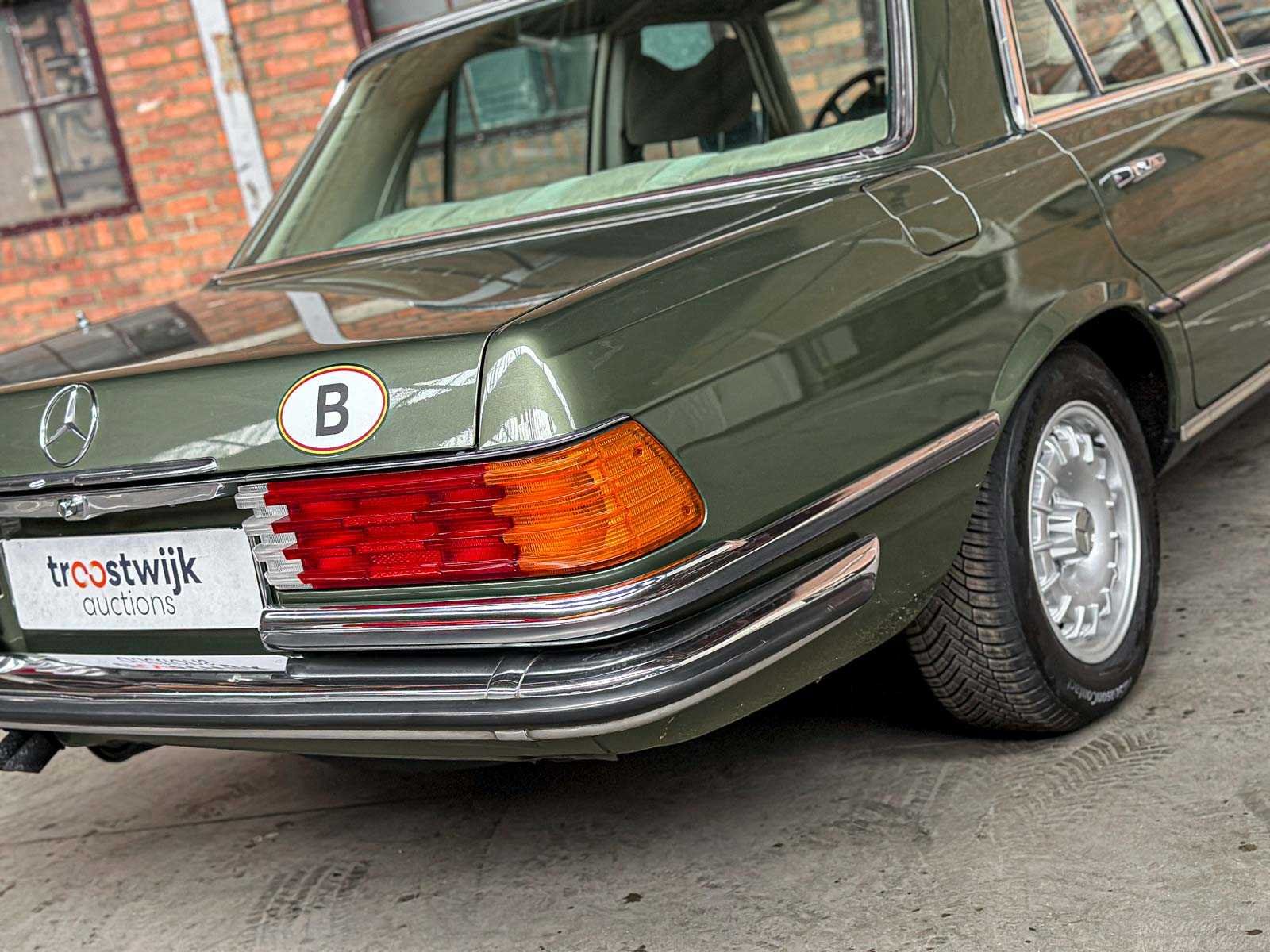 Merk: Mercedes-Benz Model: 280 SE Type: W116 Afgelezen kilometerstand: 115195km Cilinderinhoud: 2700cc Brandstof: Benzine Chassisnummer: 11602412093270 Datum eerste toelating: 1977-07-20 Vermogen (pk): 240hp Aandrijving: Achterwielaandrijving Aantal zitplaatsen: 5 Kleur: Groen Transmissie: Automaat Stuurwiel: Links Aantal cilinders: 6 Carrosserie: Sedan Nationaliteit documenten: Belgische registratiedocumenten Onderhoudshistorie: Ja
