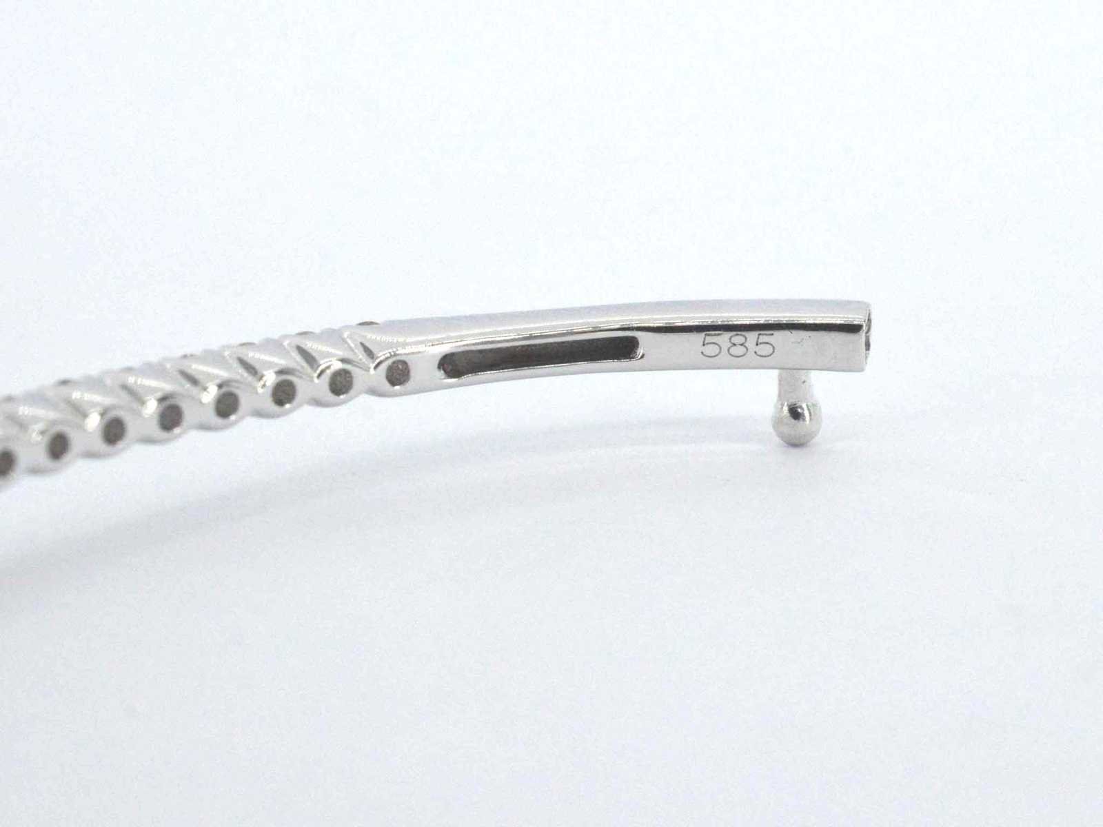 Samenvatting van gegevens Witgouden bangle armband met natuurlijke briljant geslepen diamanten Diamant: Natuurlijk; Aantal: 33 stuks; Slijpvorm: Briljant geslepen; Gewicht (carat): 0.60 carat; Kleur: F-G; Zuiverheid: VS-SI-P; Slijpkwaliteit: Zeer mooi; Juweel: Armband; Gewicht: 5 gram; Afmetingen/lengte: 6 x 5.3 cm; Materiaal: 14K goud (585); Conditie: Nieuw; Verpakking: Luxe sieradendoos; Toelichting: De kwaliteit is overgenomen van het rapport behorend bij item. De waardebepaling is een beoordeling van een gecertificeerde diamantair, gebaseerd op consumentenprijzen.; Consumentenprijs: € 5.478,- Within 14 days Materiaal: Goud Voornaamste diamant: Natuurlijk Kleur diamant: F-G Gewicht diamant: 0.60ct Slijpvorm diamant: Briljant geslepen Slijpkwaliteit diamant: Zeer mooi Zuiverheidsgraad diamant: VS-SI-P Totaal gewicht: 5g Keurmerk: 585 Lage schatting: 4382€ Hoge schatting: 5478€