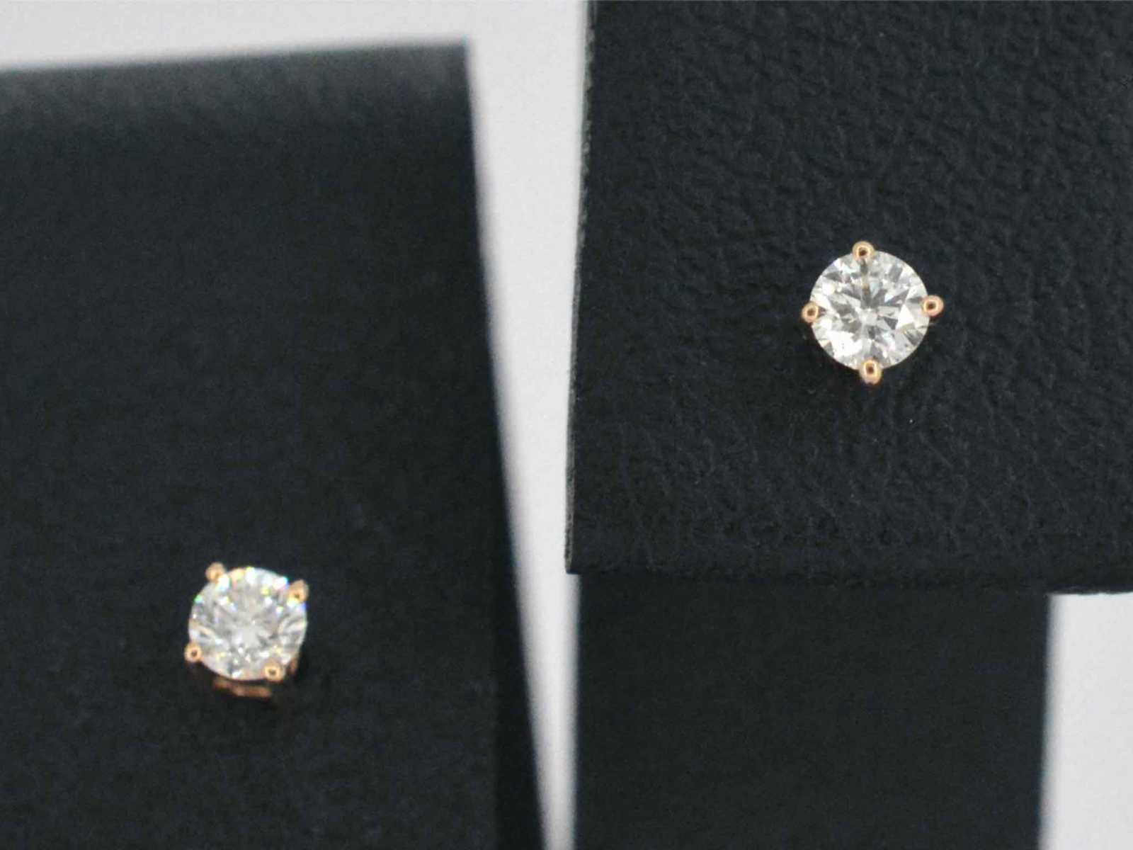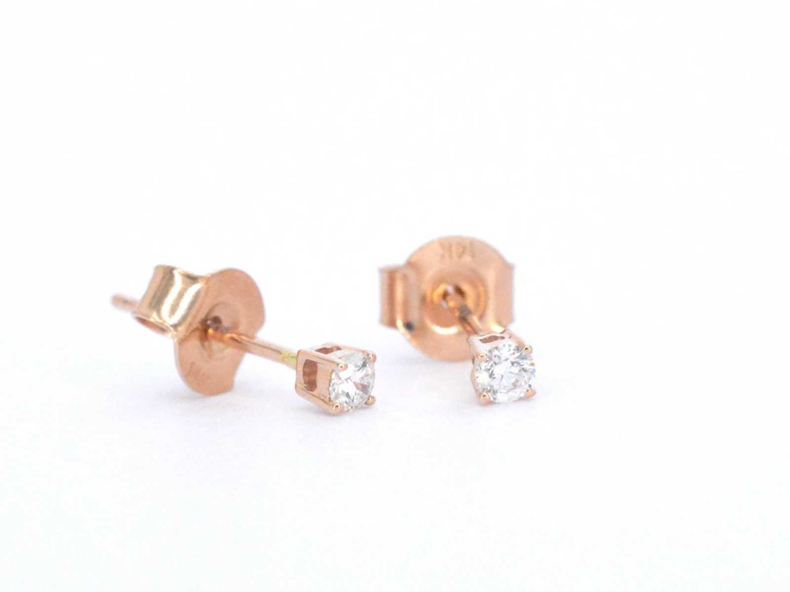 Samenvatting van gegevens Rosegouden oorbellen met diamant Diamant: Natuurlijk; Slijpvorm: Briljant geslepen; Gewicht (carat): 0.20 carat; Kleur: F-G; Zuiverheid: SI-P; Slijpkwaliteit: Zeer mooi; Juweel: Oorbellen; Gewicht: 0.6 gram; Afmetingen/lengte: 3 mm; Materiaal: 14 karaat (585); Conditie: Nieuw; Verpakking: Luxe sieradendoos; Toelichting: De kwaliteit is overgenomen van het rapport behorend bij item. De waardebepaling is een beoordeling van een gecertificeerde diamantair, gebaseerd op consumentenprijzen.; Consumentenprijs: € 1.243,- Within 14 days Voornaamste diamant: Natuurlijk Kleur diamant: F-G Gewicht diamant: 0.20ct Slijpvorm diamant: Briljant geslepen Slijpkwaliteit diamant: Zeer mooi Zuiverheidsgraad diamant: SI-P Totaal gewicht: 0.6g Keurmerk: 585 Lage schatting: 994€ Hoge schatting: 1243€
