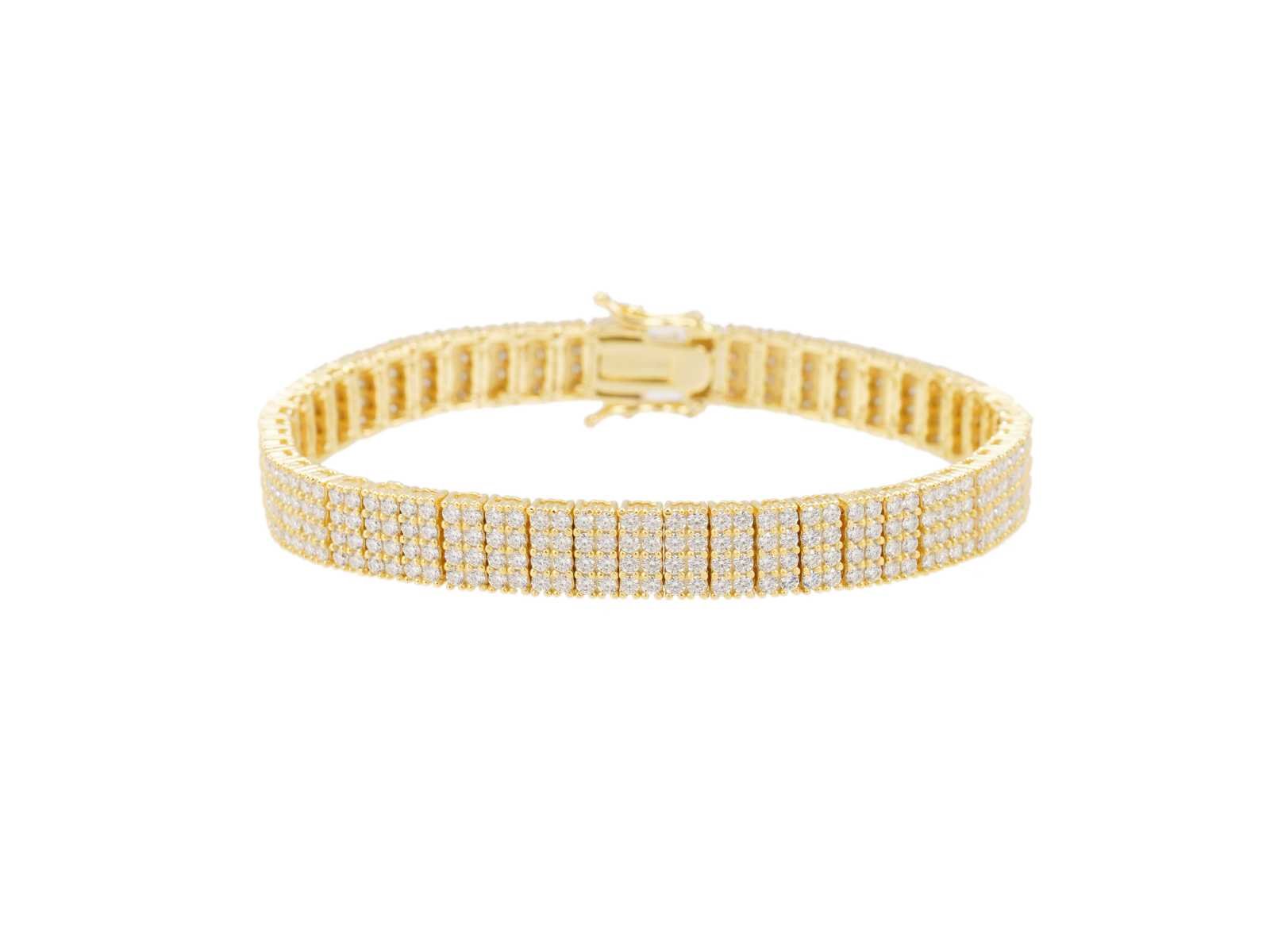 Samenvatting van gegevens Goudkleurige armband bezet met briljanten Edelsteen: Moissaniet; Aantal: ca. 420 stuks; Slijpvorm: Briljant geslepen; Kleur: F; Zuiverheid: VVS; Juweel: Armband; Merk: Harmony; Afmetingen/lengte: 17 cm; Materiaal: Geplatineerd hoog gehalte sterling zilver (925); Conditie: Nieuw; Verpakking: sieradendoos of fluwelen etui; Toelichting: De kwaliteit is overgenomen van het rapport behorend bij item. De waardebepaling is een beoordeling van een gecertificeerde diamantair, gebaseerd op consumentenprijzen.; Extra informatie: Het gemeten gewicht van de edelstenen is volgens diamant maten; Consumentenprijs: € 2.000,- Within 14 days Materiaal: Zilver Edelsteen: Moissaniet Kleur edelsteen: F Slijpvorm edelsteen: Briljant geslepen Zuiverheidsgraad edelsteen: VVS Keurmerk: 925 Lage schatting: 1600€ Hoge schatting: 2000€