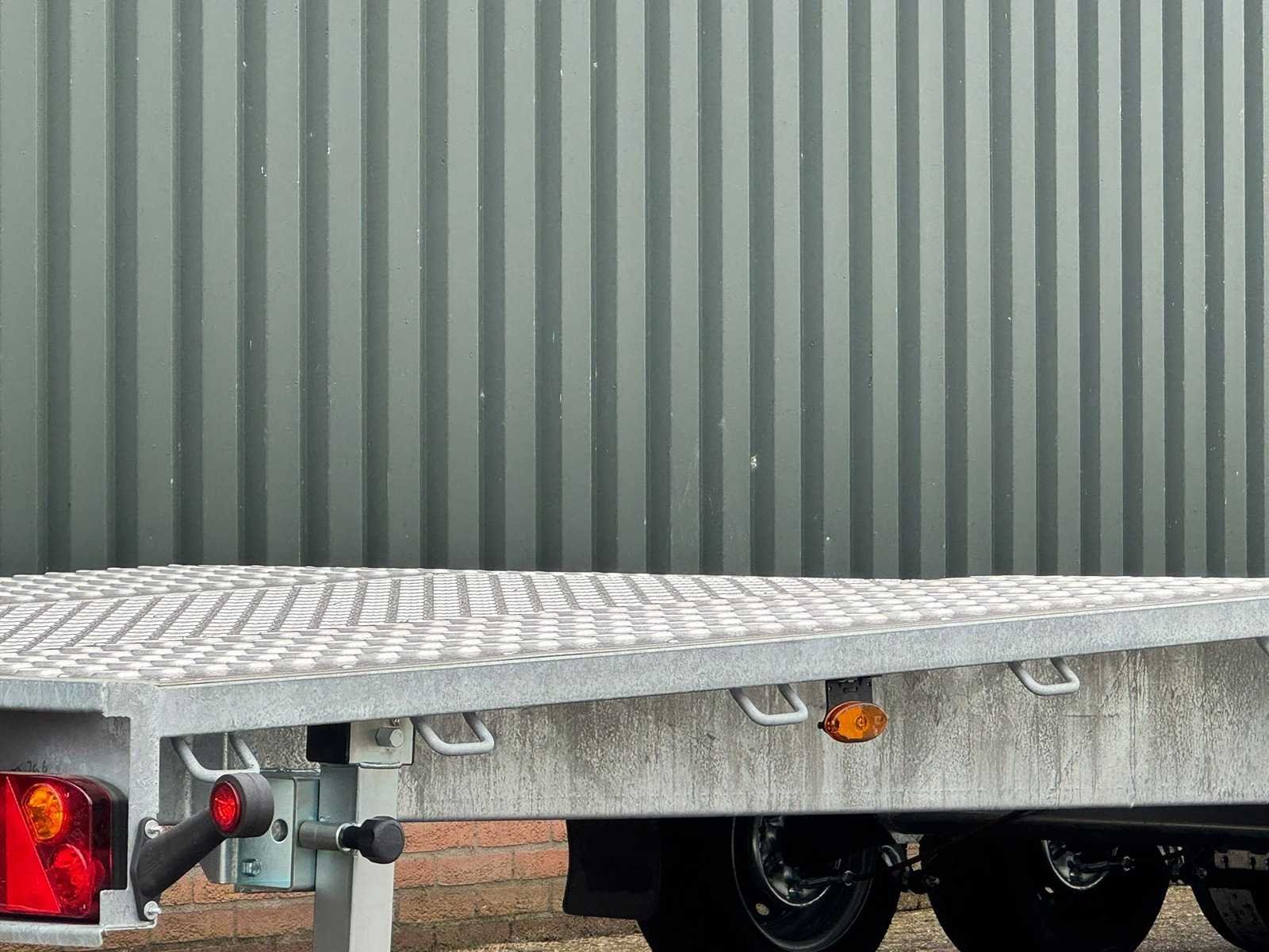Laadvloer lengte 808 cm Laadvloer breedte 210 cm Laadvloer hoogte 64 cm Oprijdhoogte 50 cm Totale lengte 955 cm Bruto gewicht 3500 kg Kogeldruk 150 kg Leeg gewicht 990 kg Netto laadvermogen 2660 kg Bandenmaat 195/50/13 inch uitgevoerd met: AL-KO assen, 3 x 1350 kg AL-KO wielkeggen AL-KO schokbrekers AL-KO V-dissel AL-KO koppeling Achteruitrijautomaat Veiligheidsindicator op koppeling Winterhoff neuswiel Reservewiel + montagebeugel op dissel Lier op liersteun Oprijplaten 2 meter in slede Volbad gegalvaniseerd chassis Aluminium Lohr gaten vloer Aluminium traanplaat in het midden Sjorogen aan zijkant van de laadvloer 13-polige stekker LED contourverlichting Heldere achterlichtunits Mistlampen Achteruitrijverlichting Merk: Niewiadow Type: Autotransporter Bouwjaar: 2026 Aantal assen: 3 Ledig gewicht: 990kg Laadvermogen: 2510kg Datum eerste toelating (NL): 17-02-2026 Kenteken: 05-WRZ-5 Nationaliteit documenten: NL