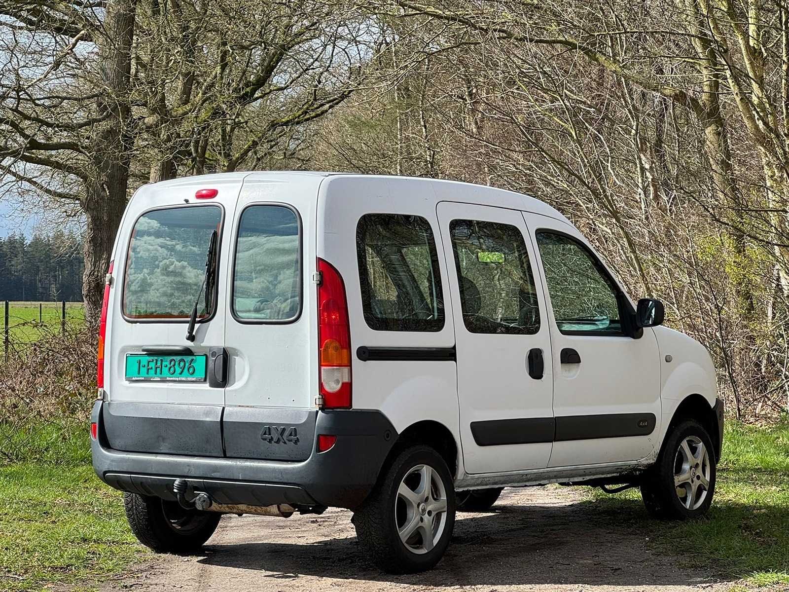 Merk: Renault Model: Kangoo Type: 4x4 Bouwjaar: 2006 Brandstof: Benzine Chassisnummer: VF1KCASA836694345 Datum eerste toelating: 22-11-2006 Aandrijving: AWD Aantal zitplaatsen: 5 Kleur: Wit Transmissie: Handgeschakeld Drive type: Vierwiel Aantal cilinders: 4 Nationaliteit documenten: Duits