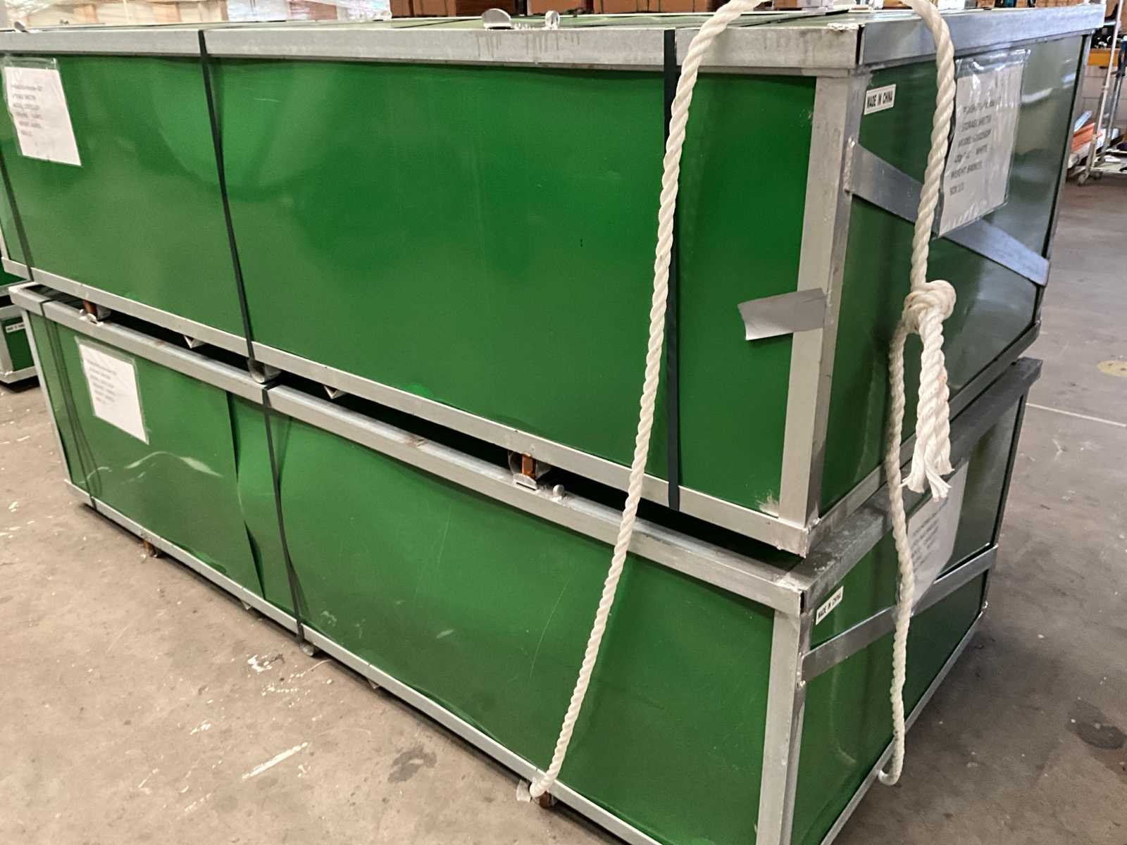 Voorzien van; Dubbel trussen systeem, gegalvaniseerd, 500gram PVC Zeil, kleur; wit, gording; 48x 1,5mm, aan beide kanten oprolbare deur met lier; 3,66 x 3,66 meter, handleiding, ongebruikt in metalen kist 320x100x180cm Merk: Greenland Type: 24.40x10x5.2 meter Bouwjaar: 2026 Totale afmeting L: 24400mm Totale afmeting Breedte: 10000mm Totale afmeting Hoogte: 5200mm