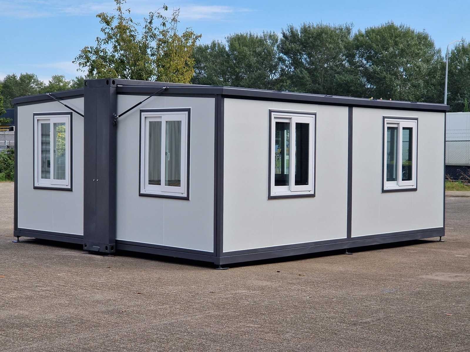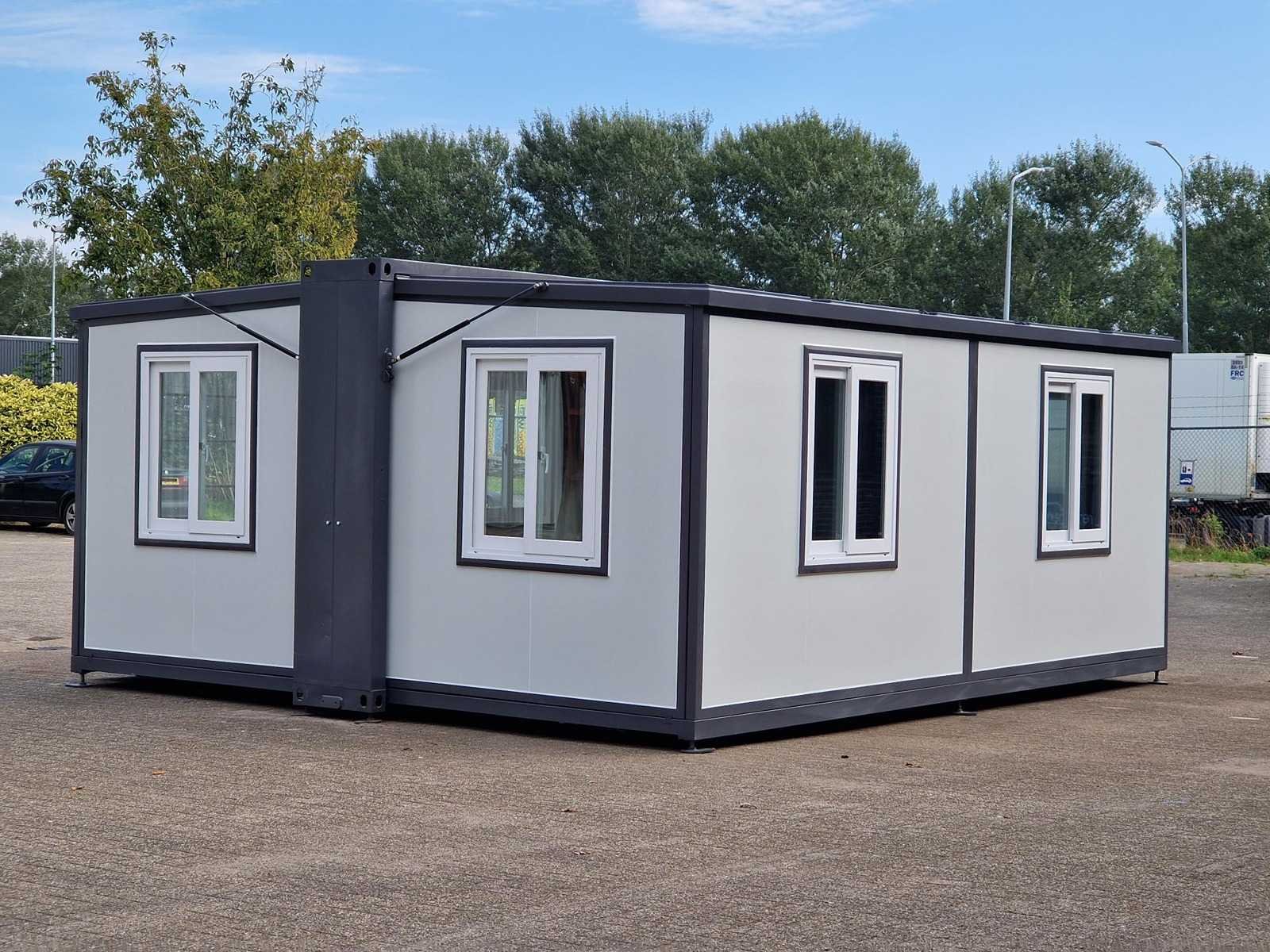 Voorzien van; kunststof kozijnen, dubbel glas, geïsoleerde wanden en dak, afwateringsgoot, vinyl vloer, afsluitbaar met sleutel, 2 x handlier voor vloer te laten zakken, afmeting ingeklapt en voor transport 5890 x 720 x 2550 mm, stelbare poten, 2 rolwielen aan achterzijde, alle 8 ramen kunnen open, zijn voorzien van hor tegen ongedierte, 28 m2 ruimte, ongebruikt Bouwjaar: 2026 Aantal ramen: 8 Uitklapbaar: true Eigen gewicht: 2500kg Totale afmeting L: 4800mm Totale afmeting Breedte: 5850mm Totale afmeting Hoogte: 2500mm
