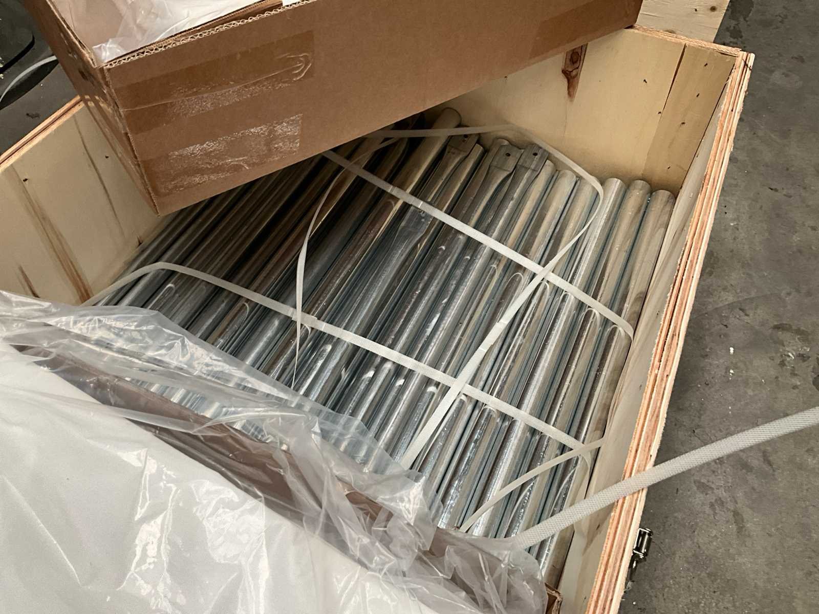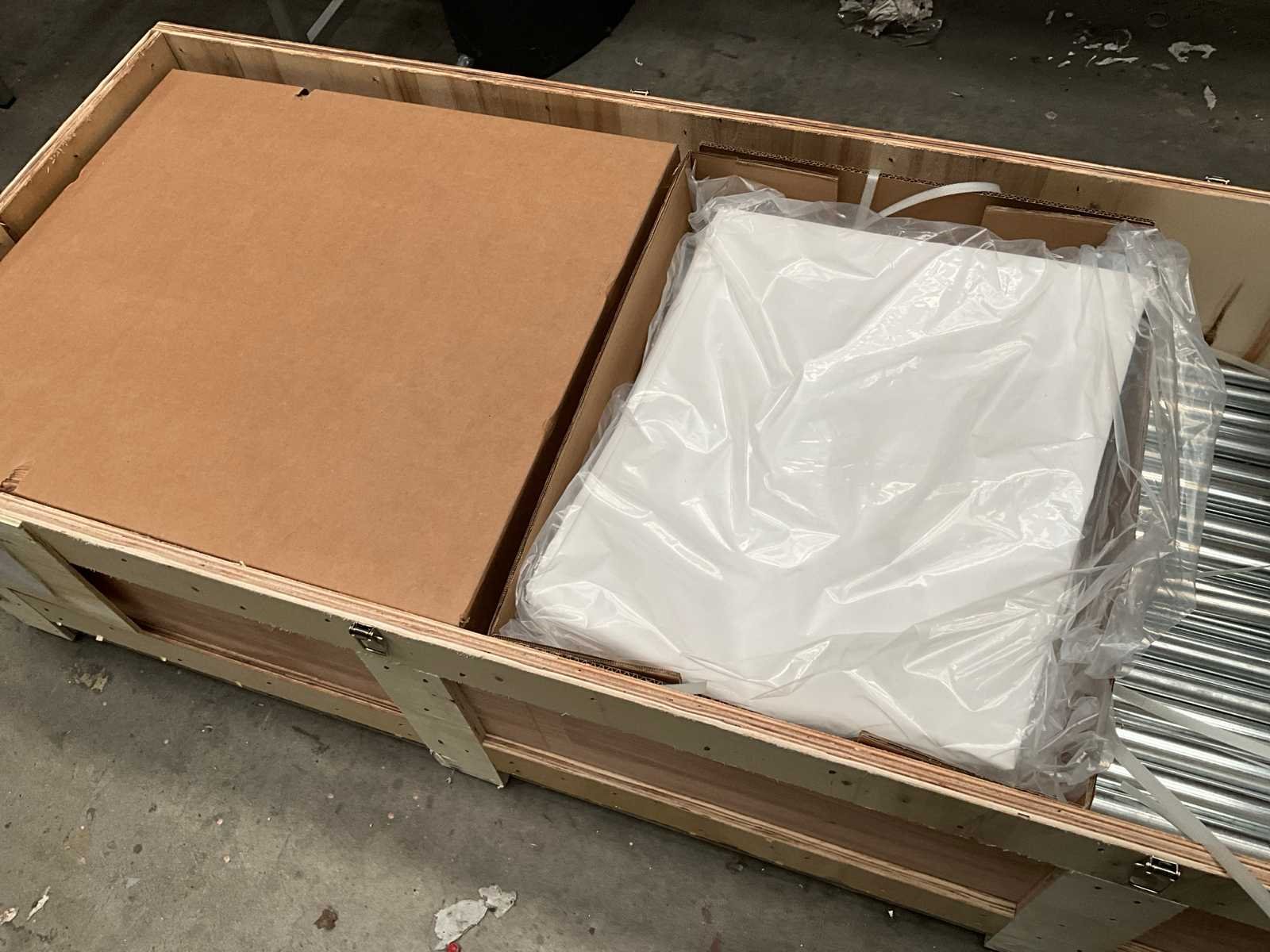 Gegalvaniseerd frame, 38mm x 1mm dik, gording 25 x 0.8 mm, 380 gram pvc zeil wit, ongebruikt in krat Model: 8x4x3 meter Product type: 400gram Kleur: wit Gewicht: 190kg Lengte: 800cm Breedte: 400cm Hoogte: 300cm