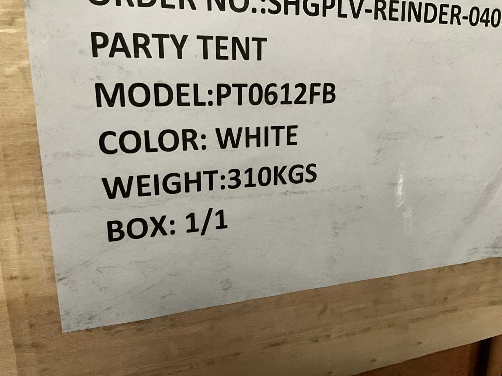 Gegalvaniseerd frame, 38mm x 1mm dik, gording 25 x 0.8 mm, 380 gram pvc zeil wit, professionele kwaliteit ongebruikt in krat Merk: Greenland Model: 12x6x3 meter Kleur: wit Gewicht: 300kg Lengte: 1200cm Breedte: 600cm Hoogte: 300cm